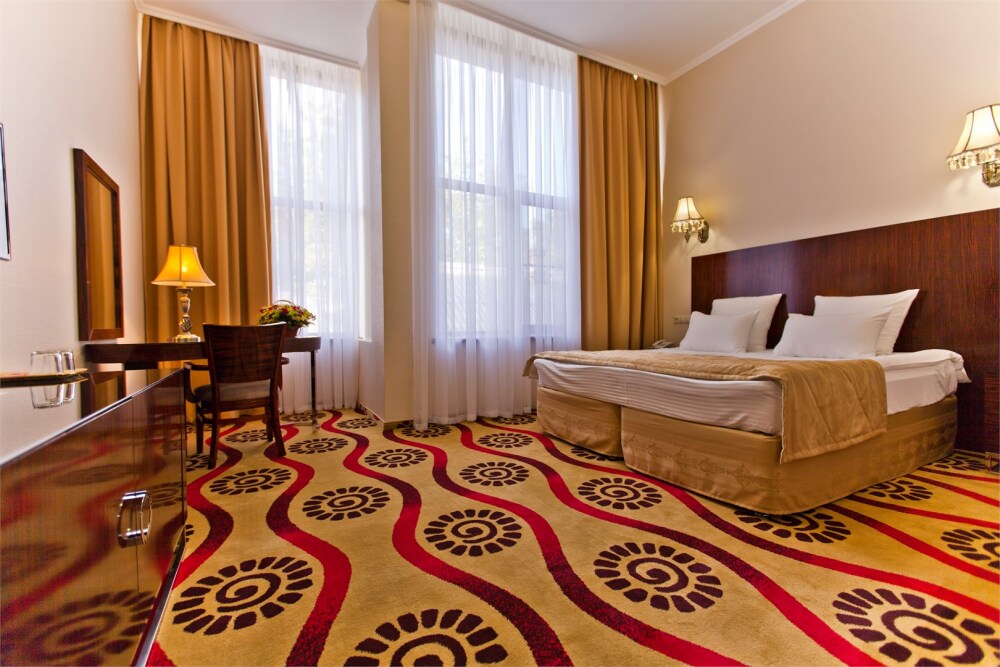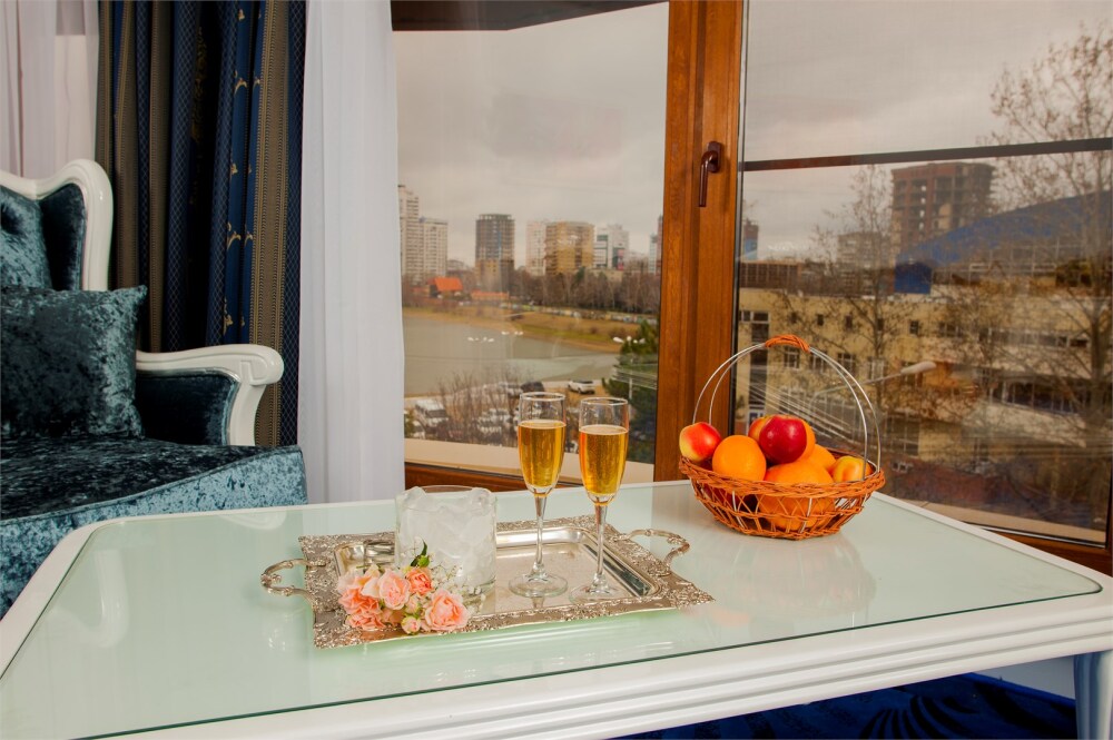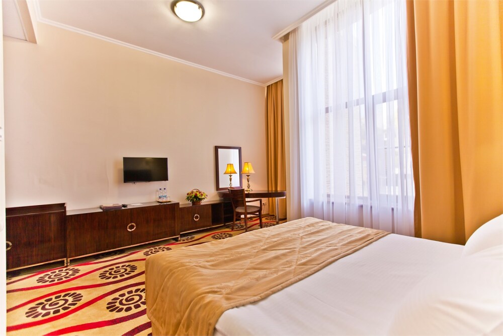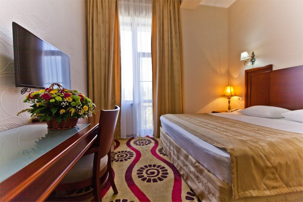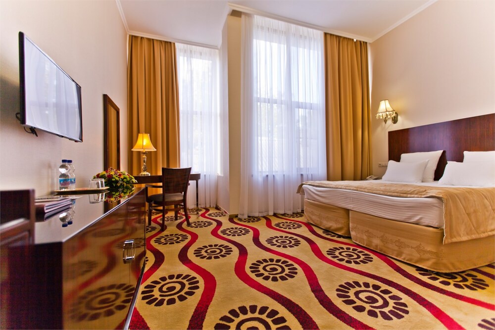 Гостиница одна из больших гостиниц Краснодара имеющая 53 комфортабельных номеров разных категорий с питанием: люксы и полулюксы, а также одноместные и двухместные номера. Интерьеры номеров отличает комфорт и профессиональный дизайн. Все номера оснащены кондиционером, мини-баром, ванной, феном, тапочками, туалетными принадлежностями.