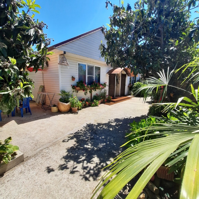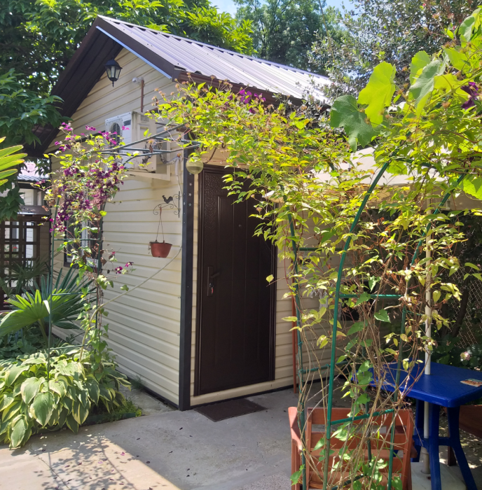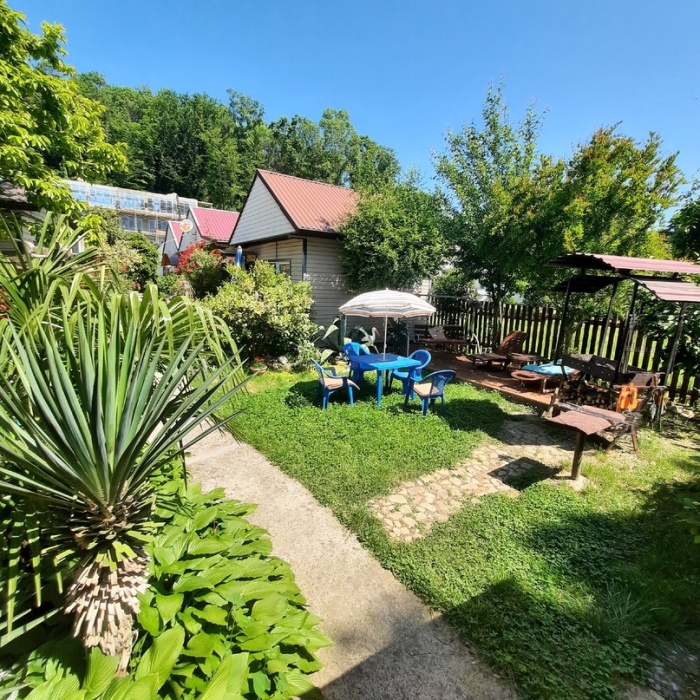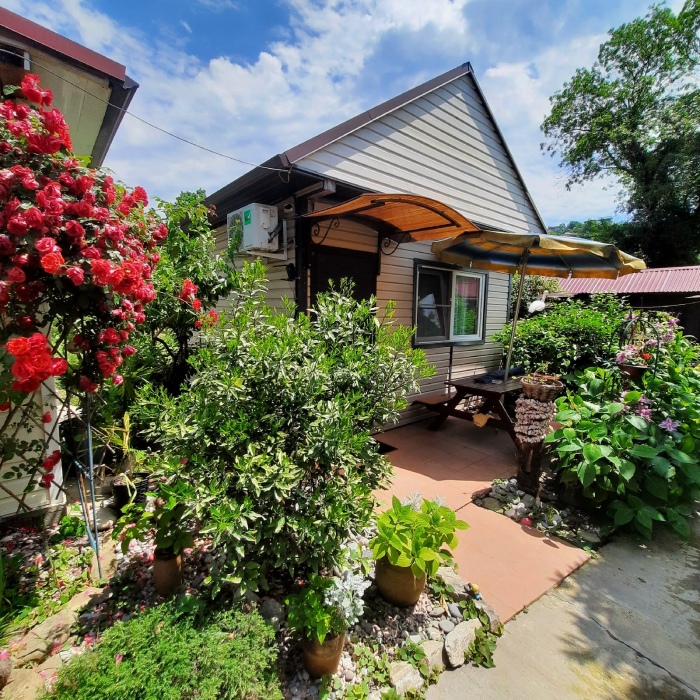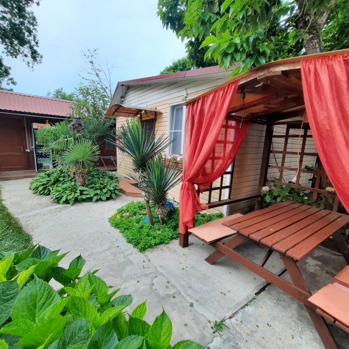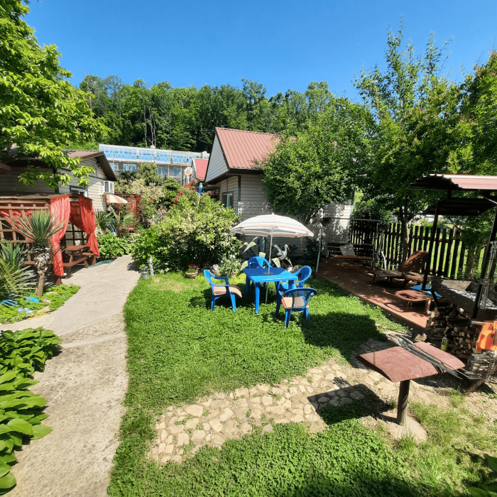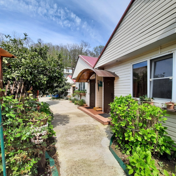 У нас есть восемь отдельно стоящих одноэтажных домиков, в каждом из которых есть всё необходимое для комфортного отдыха. Общая летняя кухня и мангал, беседки и шезлонги, детская комната с игрушками, библиотека, бильярдный и теннисный столы, цитрусовые деревья и цветочный сад — всё это доступно каждому нашему гостю.