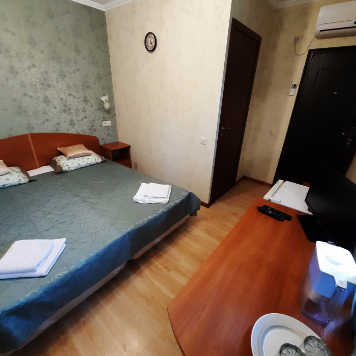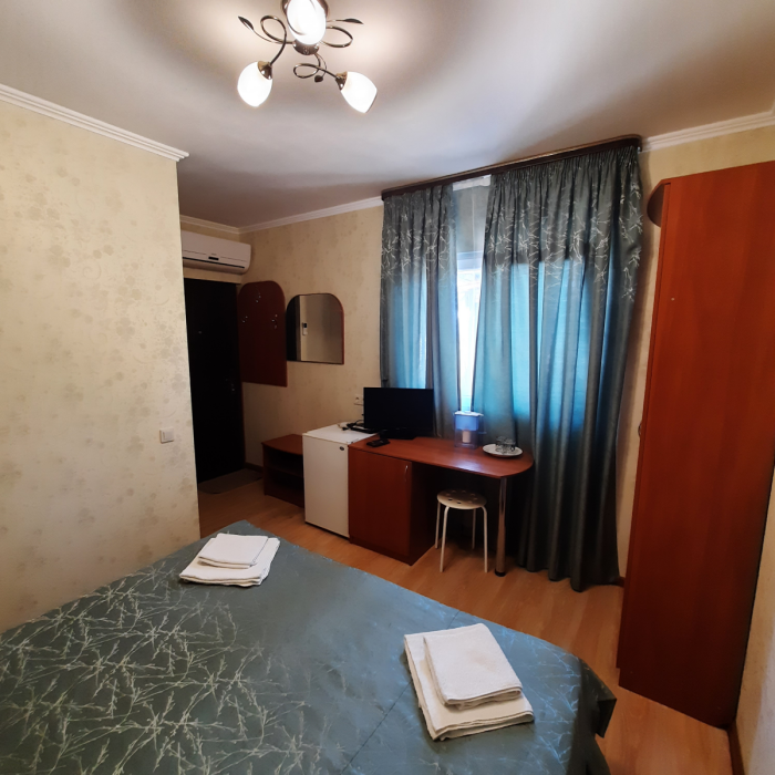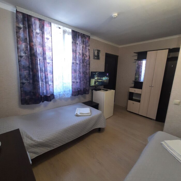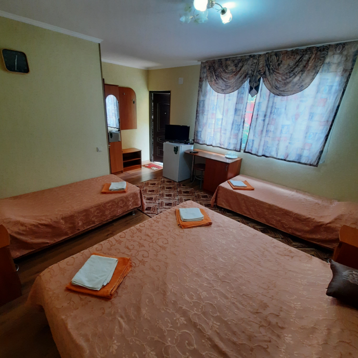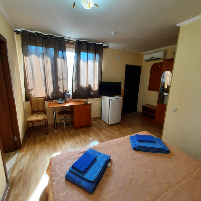 Для вашего удобства в номере есть телевизор и холодильник. Общая летняя кухня позволяет самостоятельно готовить любимые блюда.