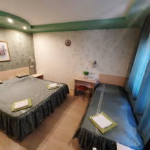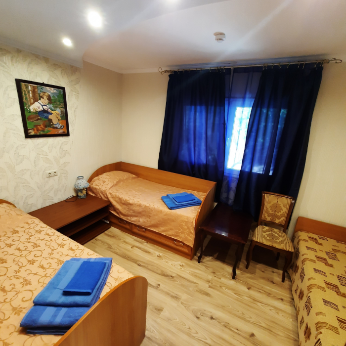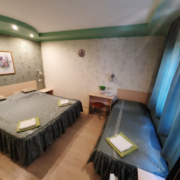 Четырёхместный двухкомнатный номер в нашем уютном отеле идеально подходит для комфортного размещения компании друзей или семьи. В номере четыре односпальные кровати, две из которых можно разместить вместе или раздельно.