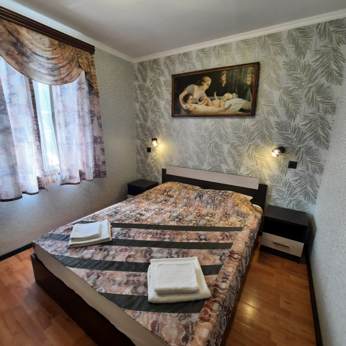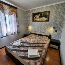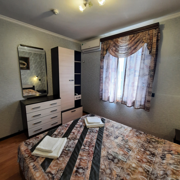 Номер рассчитан на комфортное размещение четырёх человек и имеет возможность дополнительного спального места. Летняя беседка и мангальная зона позволят вам насладиться отдыхом на свежем воздухе.