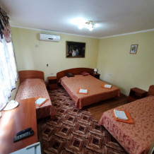 Четырёхместный домик в нашем уютном отеле идеально подходит для комфортного размещения компании друзей или семьи. В номере находятся четыре односпальные кровати, две из которых можно разместить вместе или раздельно. В вашем распоряжении будут душ, раковина, туалет, а также все необходимые гигиенические принадлежности.