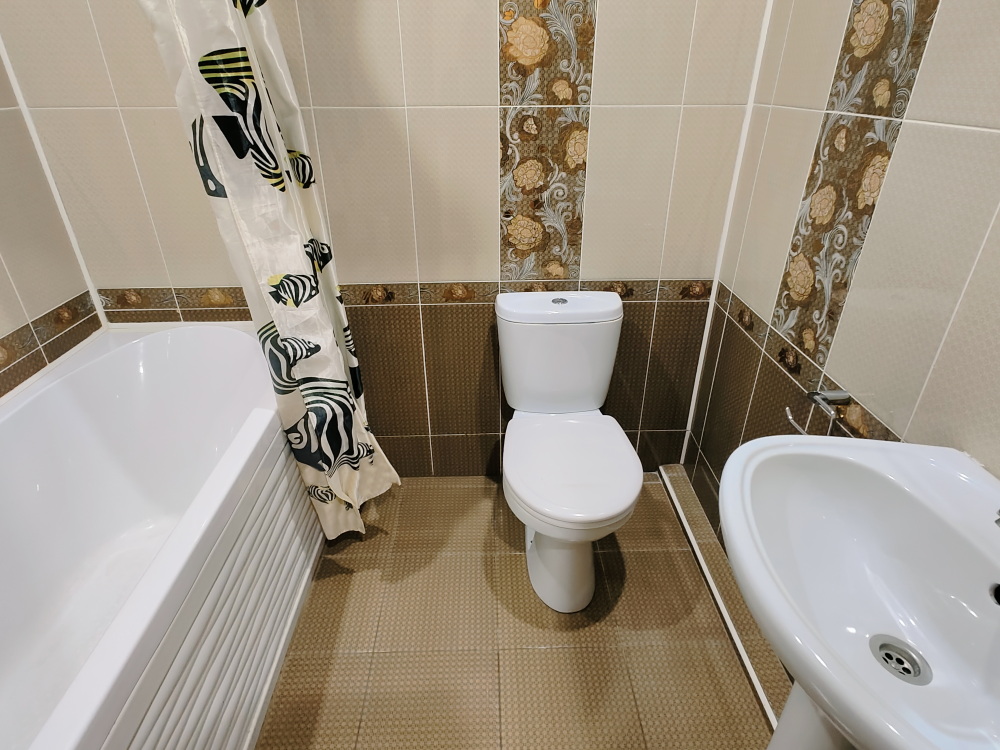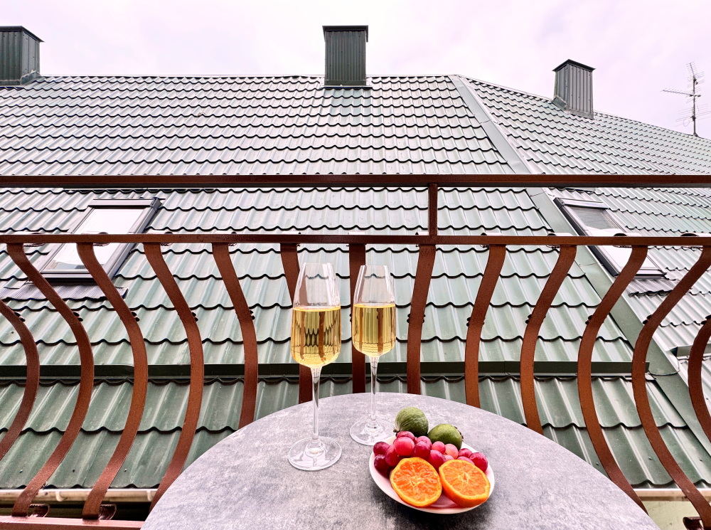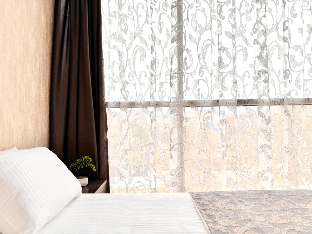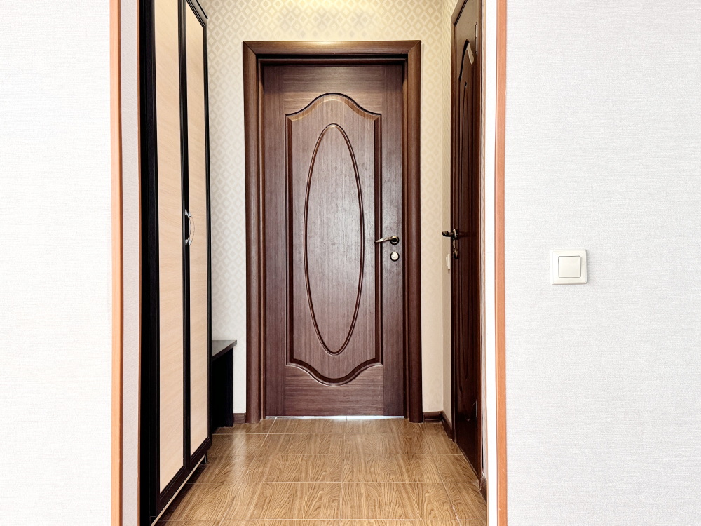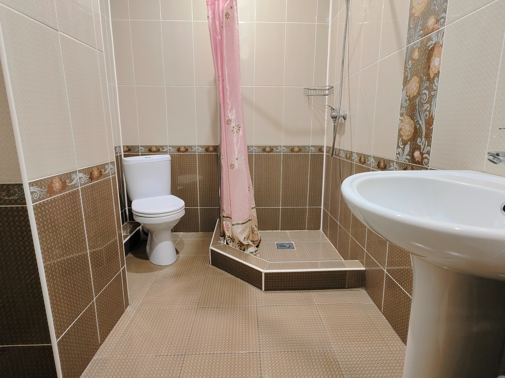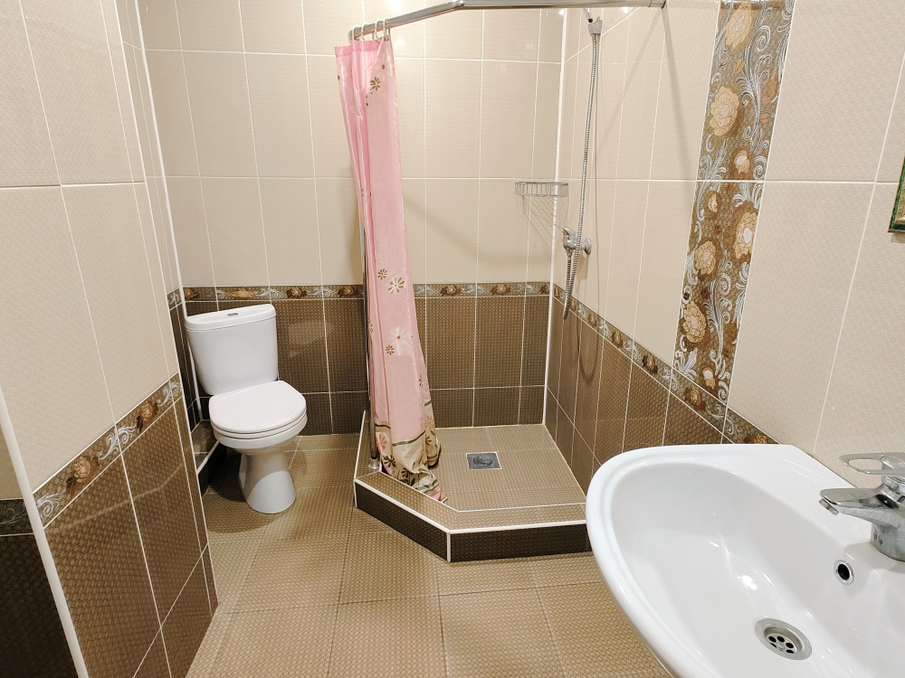 Номер с видом на город. Двуспальная кровать (140*200), двуспальный диван-кровать, прикроватные тумбочки, бра, кондиционер, журнальный столик, телевизор, туалетный столик, зеркало, мини-холодильник, сейф. В прихожей находится вешалка для одежды, шкаф для хранения вещей. Балкон оборудован летней мебелью для отдыха, стол и стулья. Ванная комната: душ или ванная, фен, раковина и санузел.