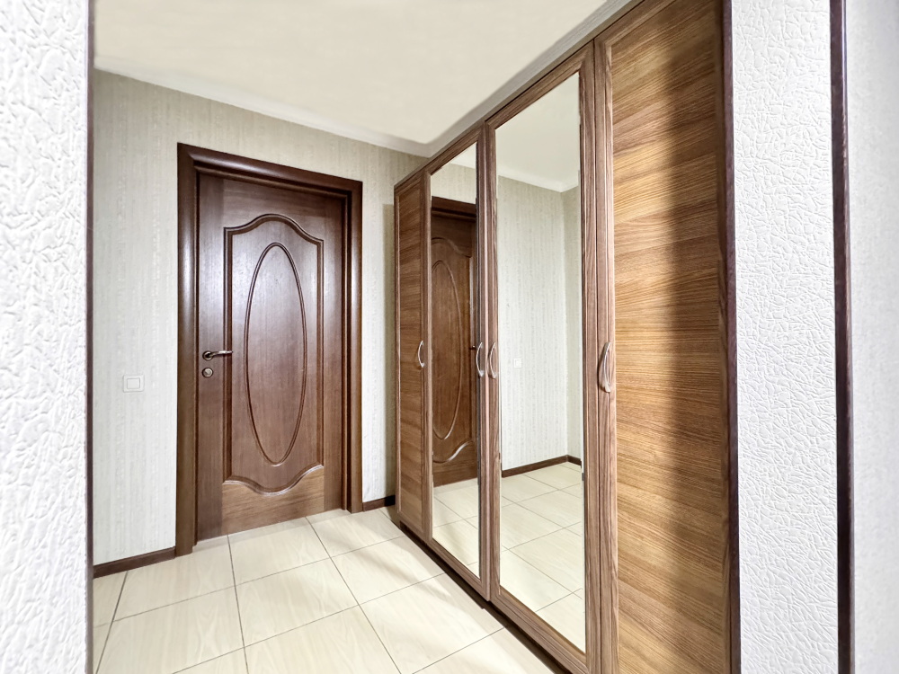 Двуспальная кровать (140*200), прикроватные тумбочки, бра, кондиционер, журнальный столик, телевизор, туалетный столик, зеркало, мини-холодильник, сейф. В прихожей находится вешалка для одежды, шкаф для хранения вещей. Балкон оборудован летней мебелью для отдыха, стол и стулья. Ванная комната: душ или ванная, фен, раковина и санузел.