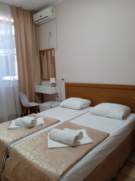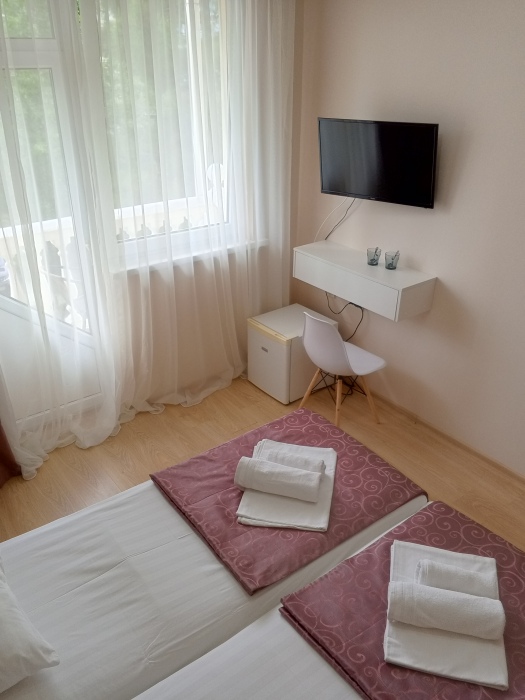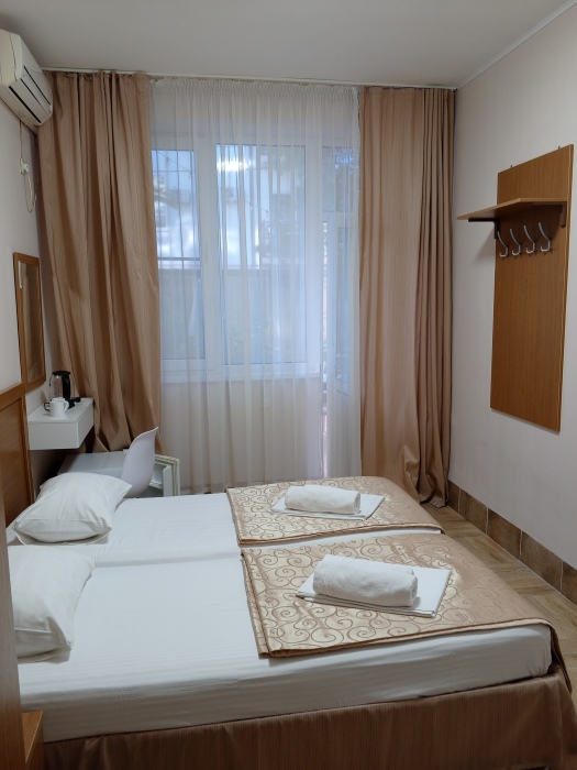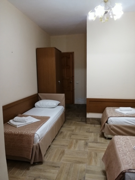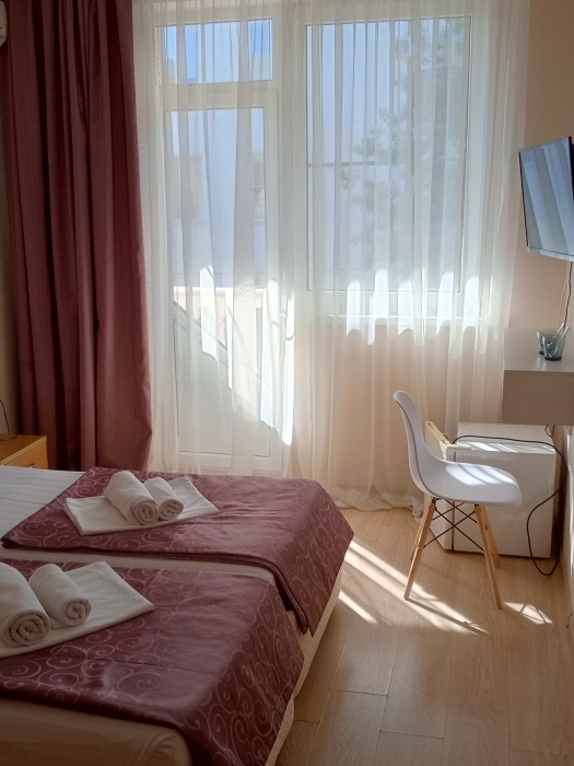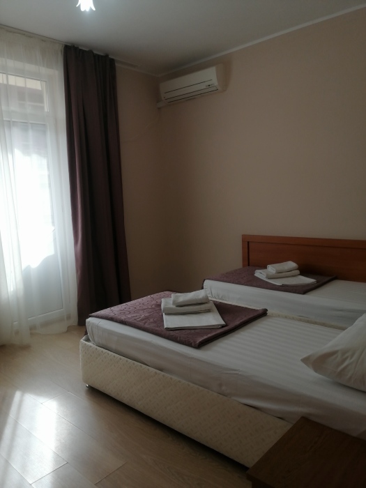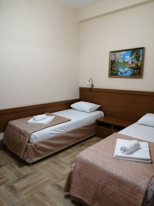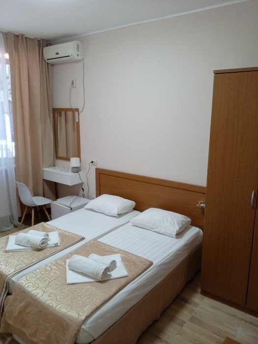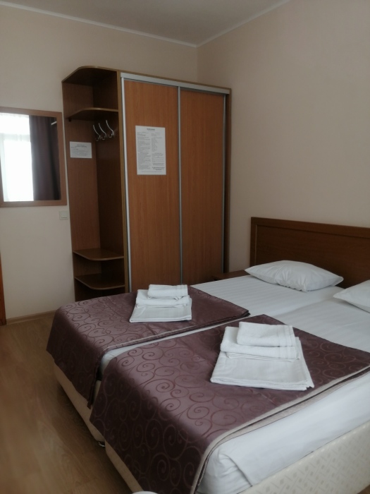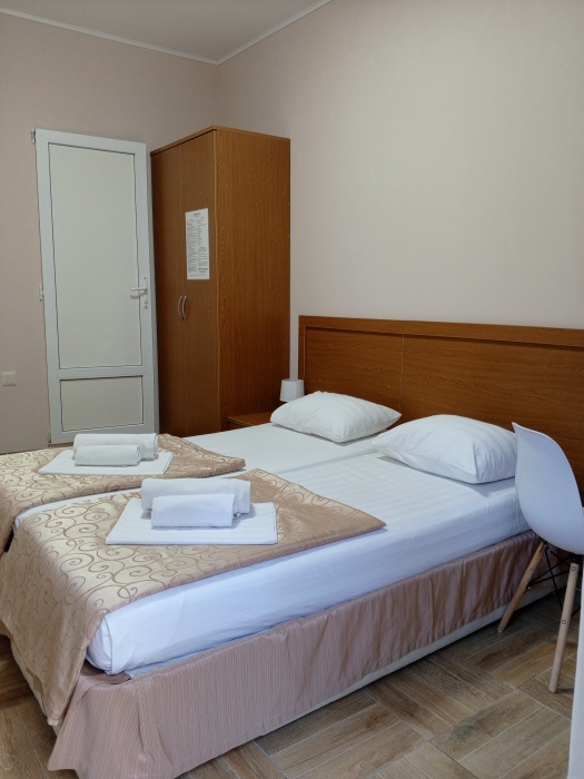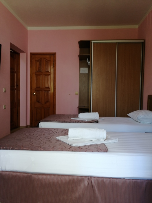 В Гостевом доме 12 номеров со всеми удобствами.Система размещения «Стандарт»- с 2х, 3х, 4х местными номерами с балконами. Для вашего удобства номера оборудованы собственным душем, кондиционером, телевизором, холодильником, ортопедическими матрасами, чистым белым бельём, полотенцами, принадлежностями для душа, тапочки.
