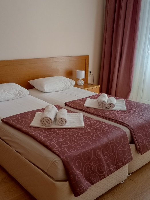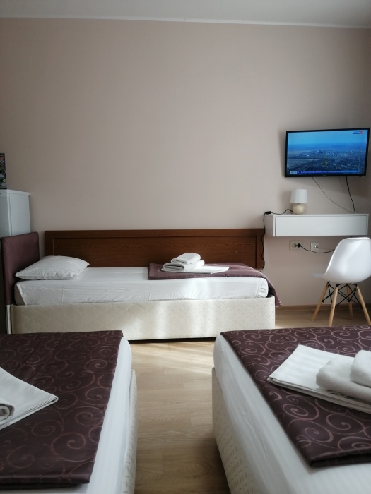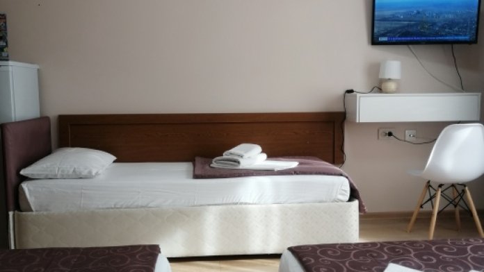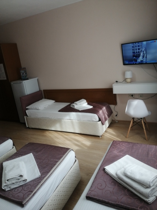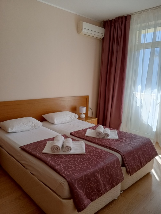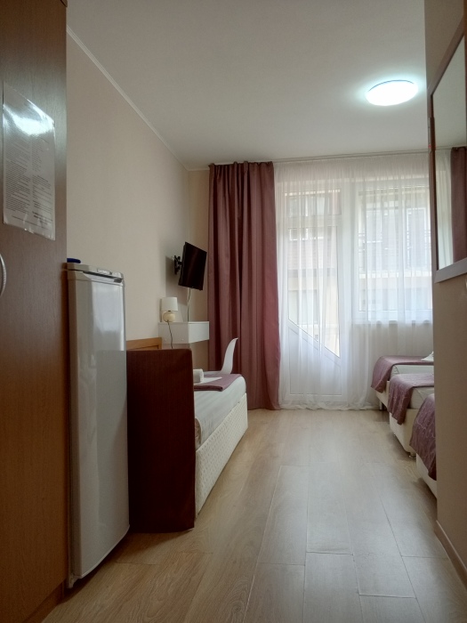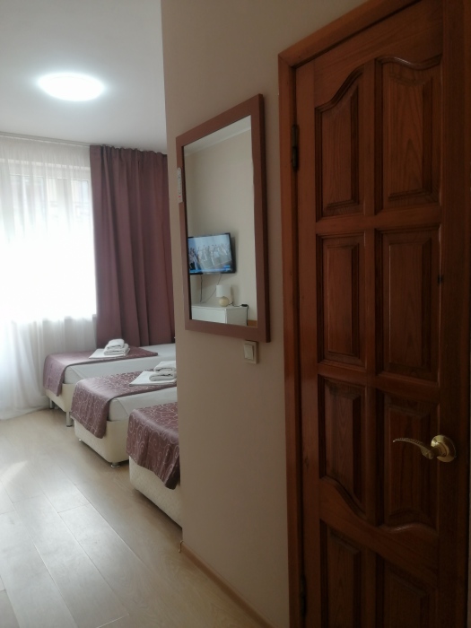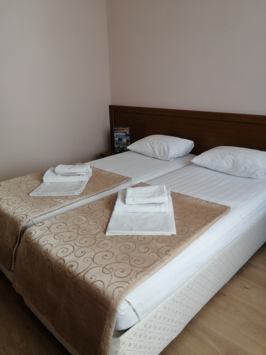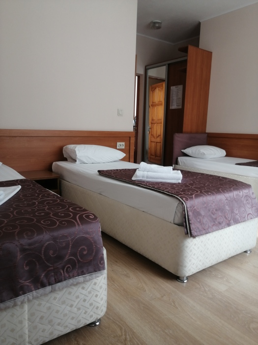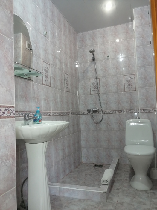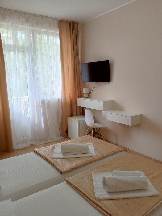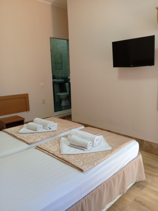 В Гостевом доме 12 номеров со всеми удобствами.Система размещения «Стандарт»- с 2х, 3х, 4х местными номерами с балконами. Для вашего удобства номера оборудованы собственным душем, кондиционером, телевизором, холодильником, ортопедическими матрасами, чистым белым бельём, полотенцами, принадлежностями для душа, тапочки.