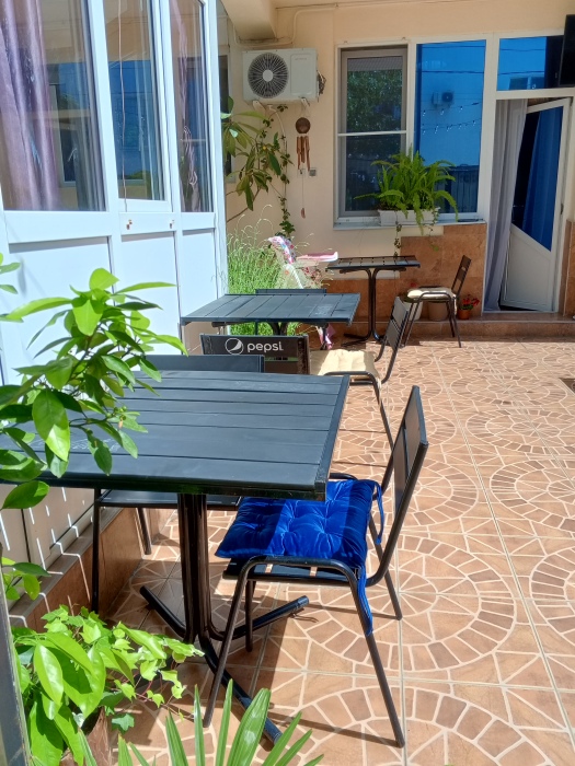 На территории дома есть уютный дворик, мини бар, где можно посидеть при свечах, за бокалом вина или чашечкой ароматного чая!