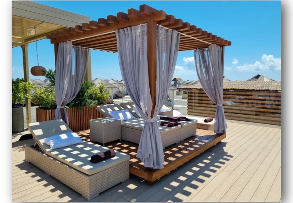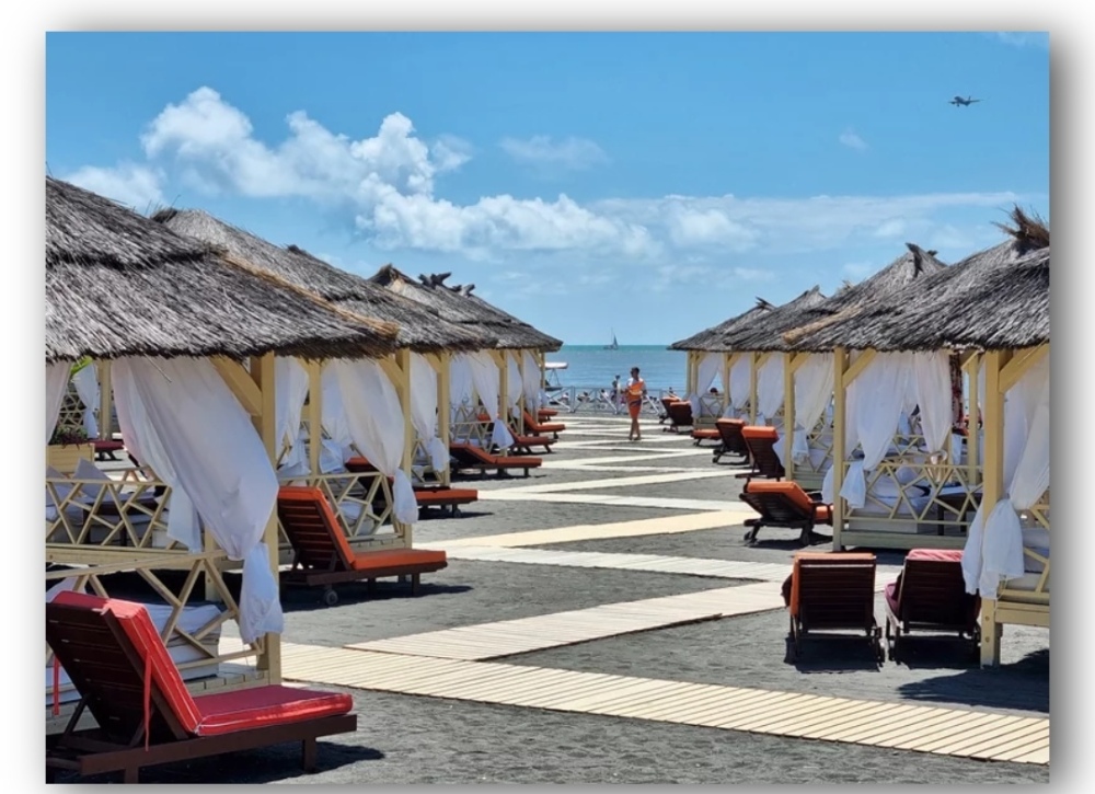 Пляжи «Мандарин» и «Чайка» чистые, стильные, с шезлонгами, бунгало, бассейнами, серф и сап -станциями, детский аквапарк, бары, рестораны и многое другое.