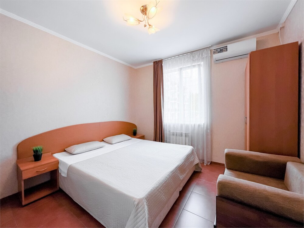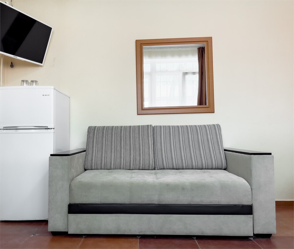 В номере категории комфорт может разместиться до 3 гостей. Для вашего удобства в номере двуспальная кровать или две односпальные , диван - кровать, 2 тумбочки, шкаф для одежды, телевизор, кондиционер, холодильник, собственная ванная комната, комплект постельного белья, набор полотенец.