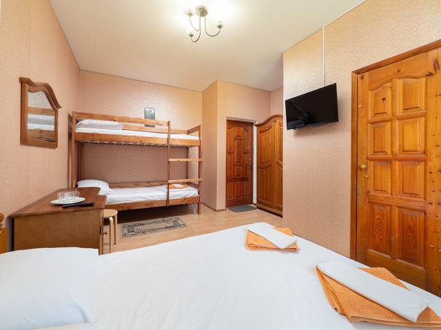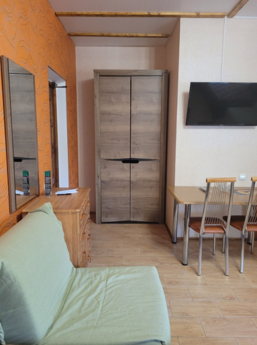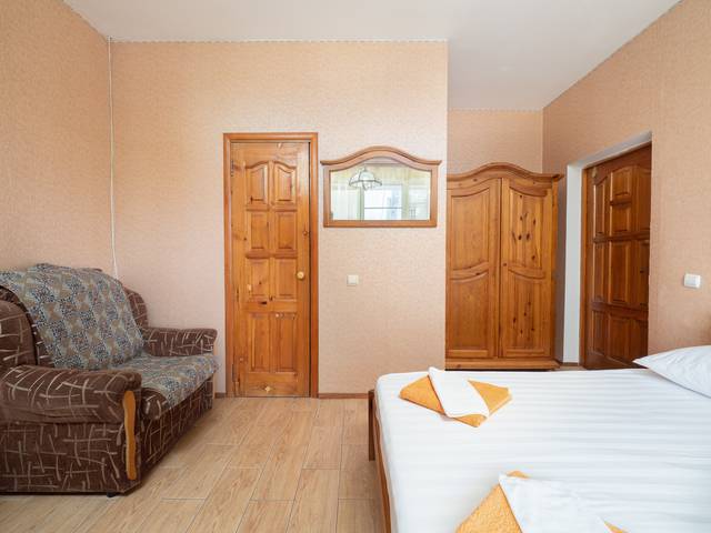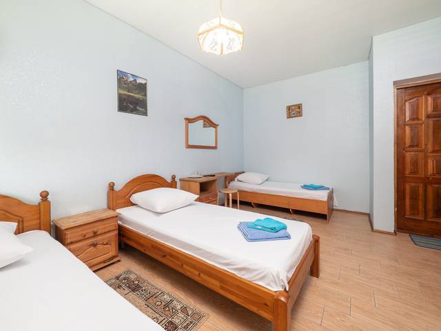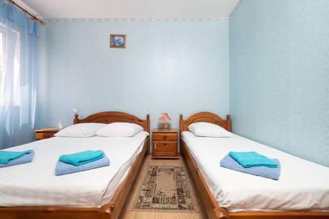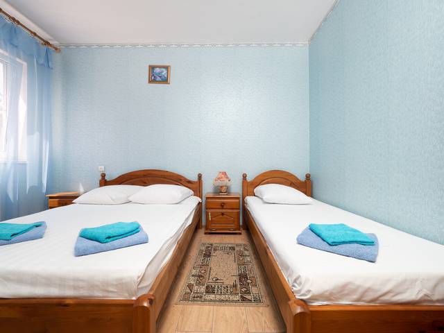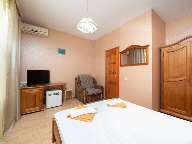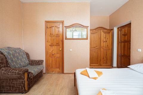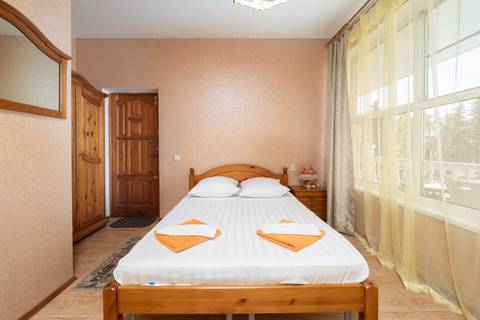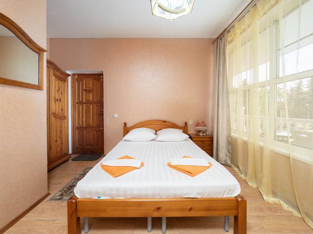 Здание представляет собой четырехэтажный корпус. Размещение гостевого дома рассчитанно на 20 номеров. Номерной фонд состоит из двухместных однокомнатных номеров или двухкомнатных номеров.