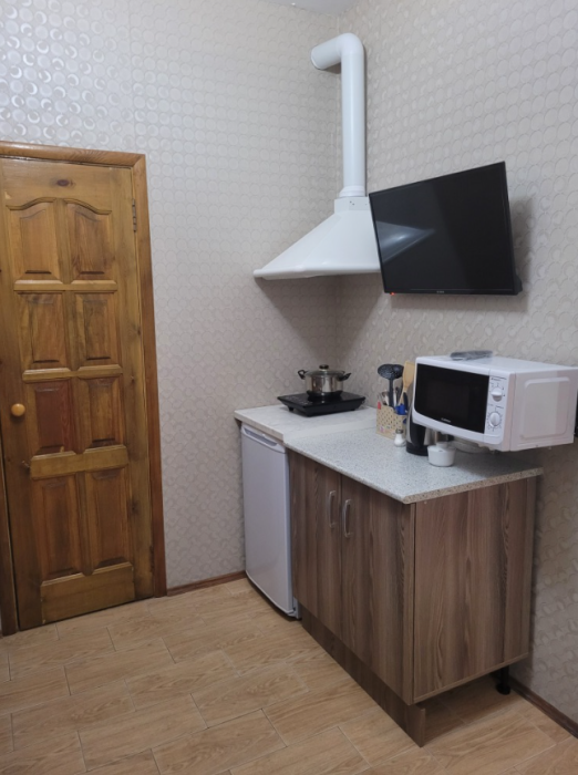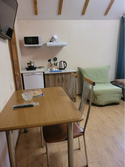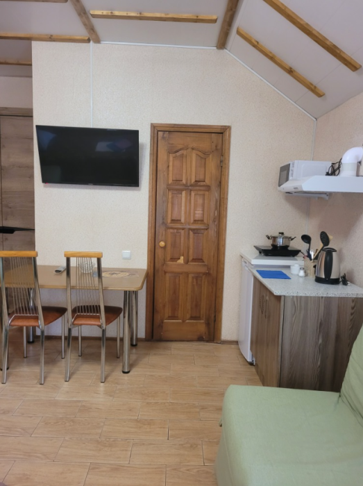 Двор просторный, есть место для отдыха, беседка, барбекю, мангал. Территория огорожена и охраняется. Для автолюбителей предоставляется стоянка.