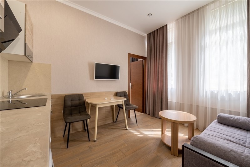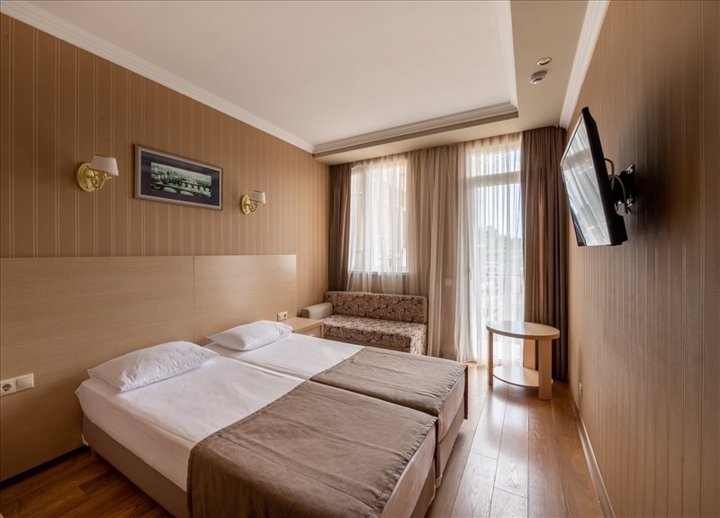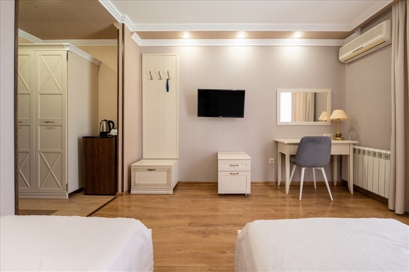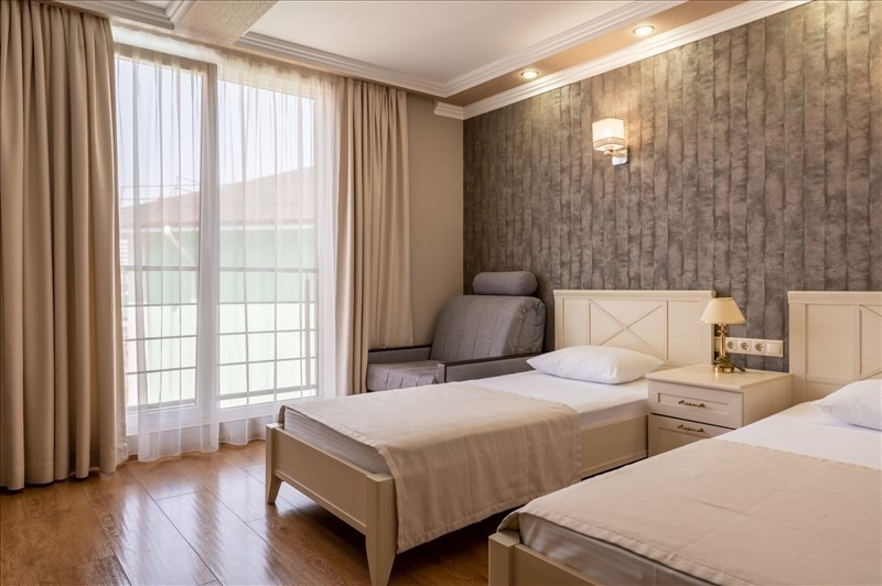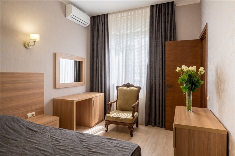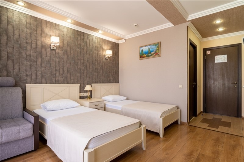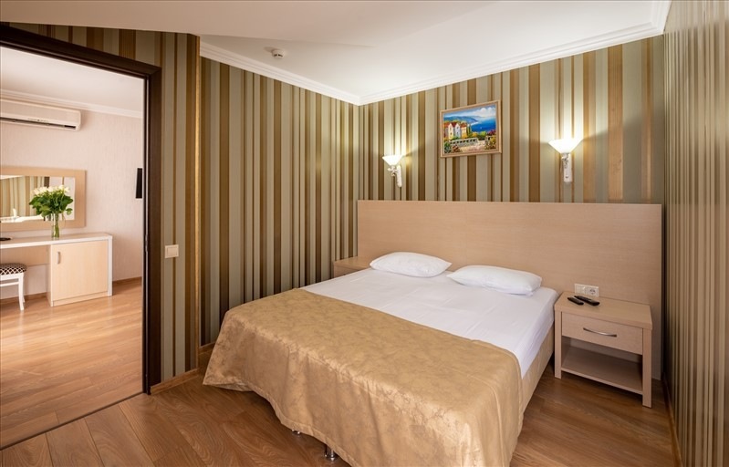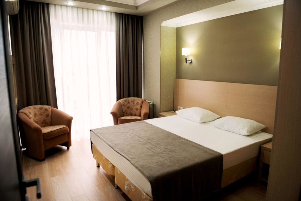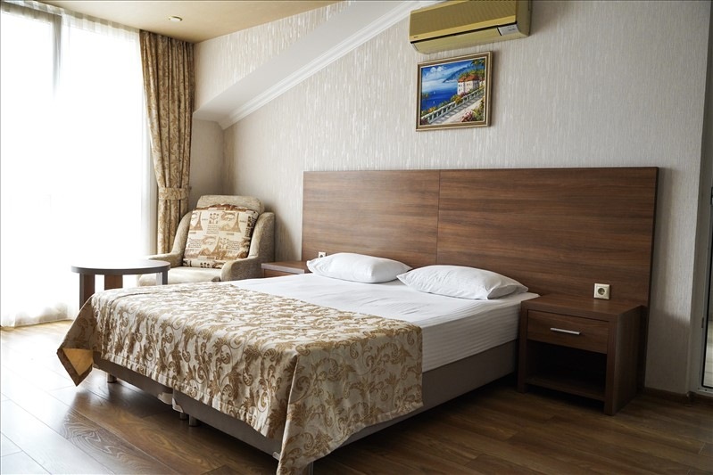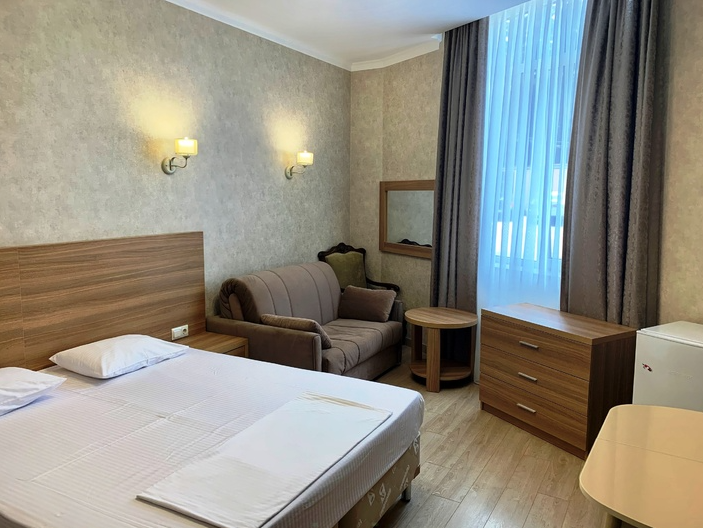 Для Вас комфортабельное размещения семейного типа, номера категории стандарт, люкс, семейный люкс, апартаменты с кухней. Все номера оснащены кондиционером, телевизором и собственной ванной комнатой.