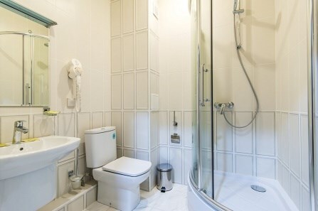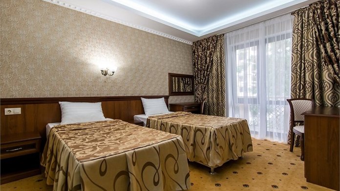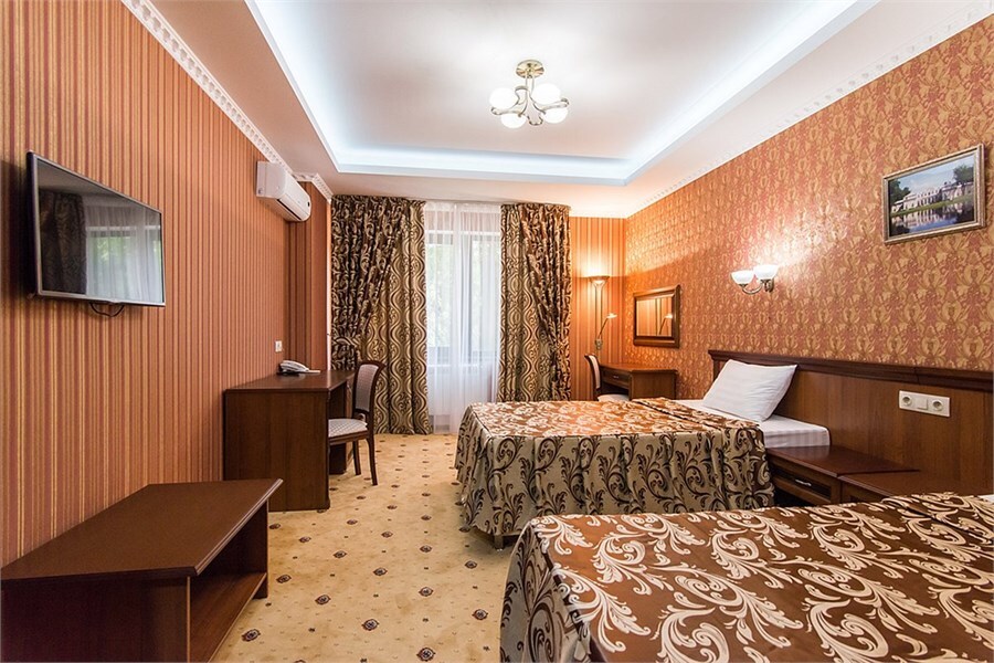 Просторный светлый номер отлично подойдет для размещения 2 взрослых гостей. Возможно размещение на одной 2-спальной или двух 1-спальных раздельных кроватях. Матрас кровати – высокий. Покрытие пола – ковролин, на стенах – обои. Номер выполнен в приятных бежевых тонах, в отделке использованы неаллергенные материалы. Для поддержания комфортной температуры в номере установлена индивидуальная сплит-система и радиатор отопления. Санузел оборудован душевой кабиной, унитазом, раковиной, полотенцесушителем. Горячая вода подается круглосуточно.