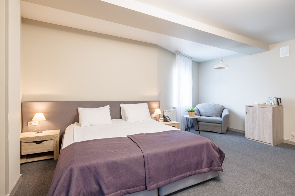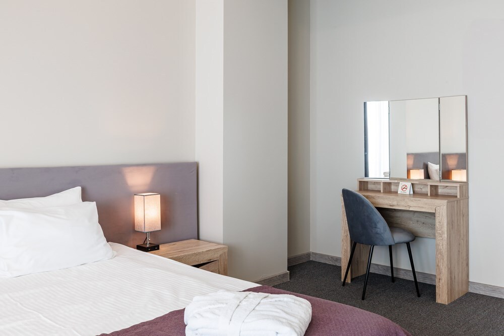 Уютный номер с большой двуспальной кроватью или 2 односпальными. В большинстве номеров есть балкон и прямой вид на море. Возможно предоставление номера с боковым видом на море. В стоимость входит: вода бутилированная, краснодарский чай, премиальная косметика Sargan, пользование оборудованным пляжем в летний сезон.