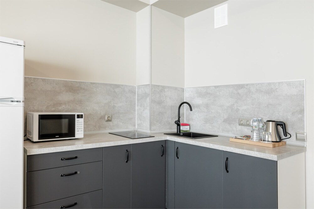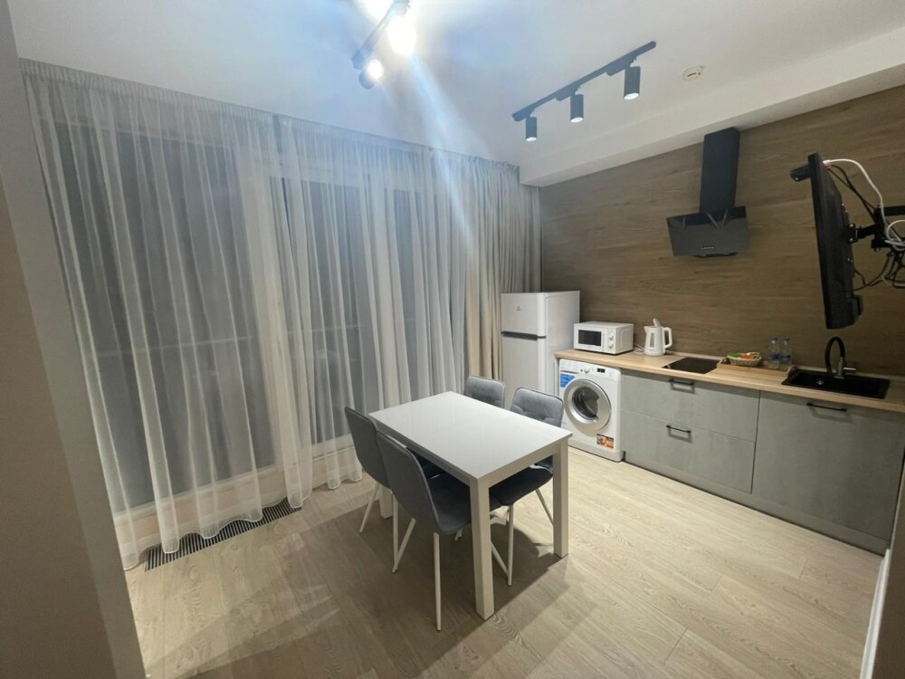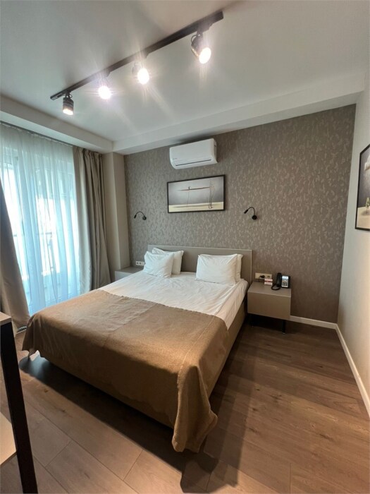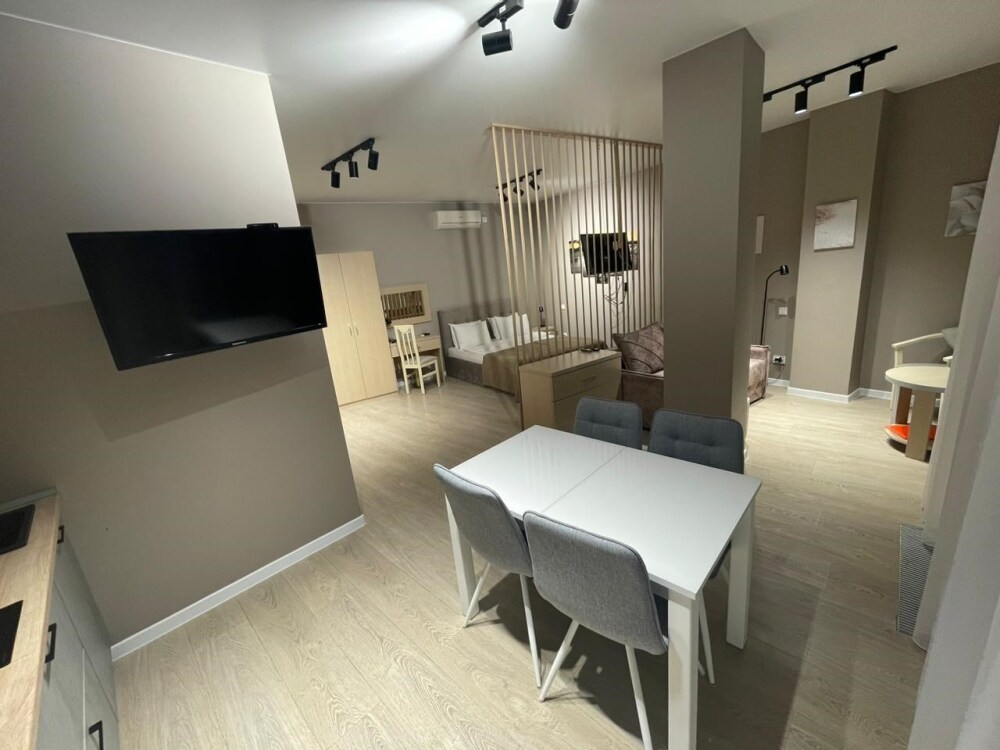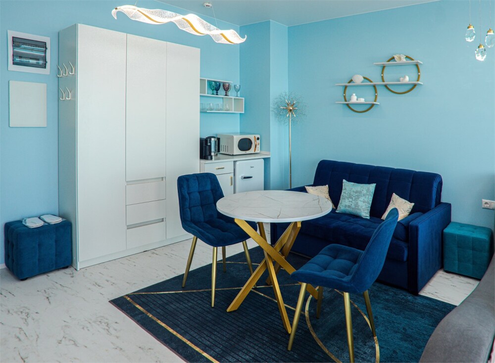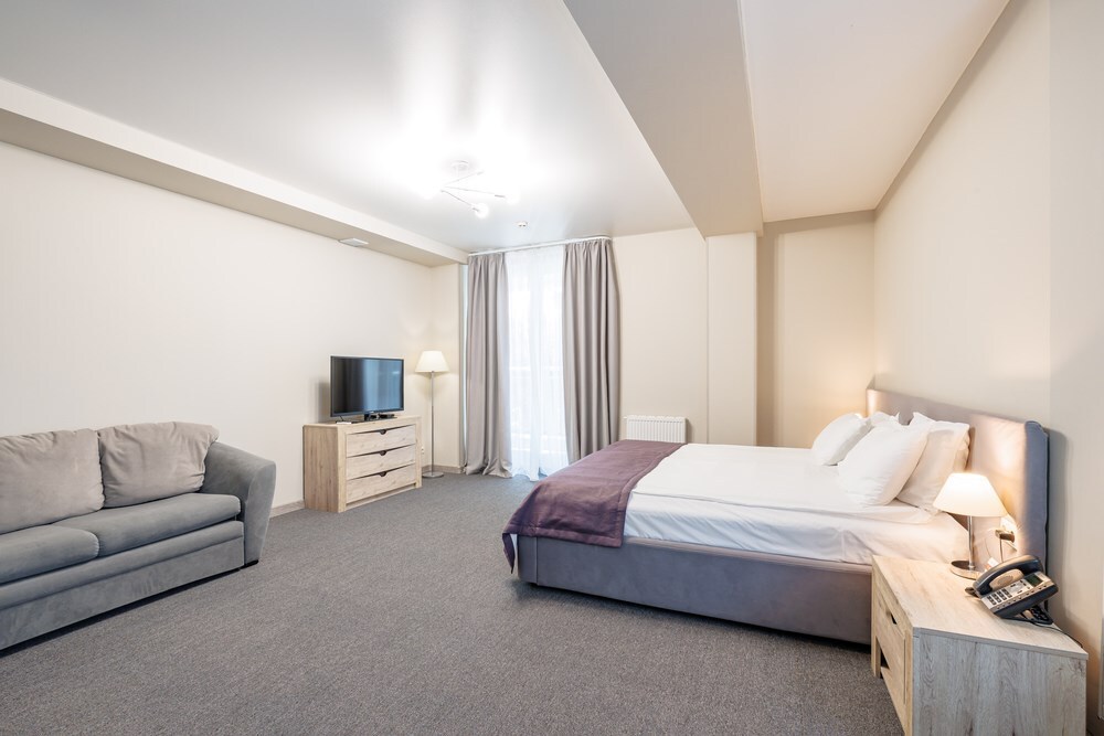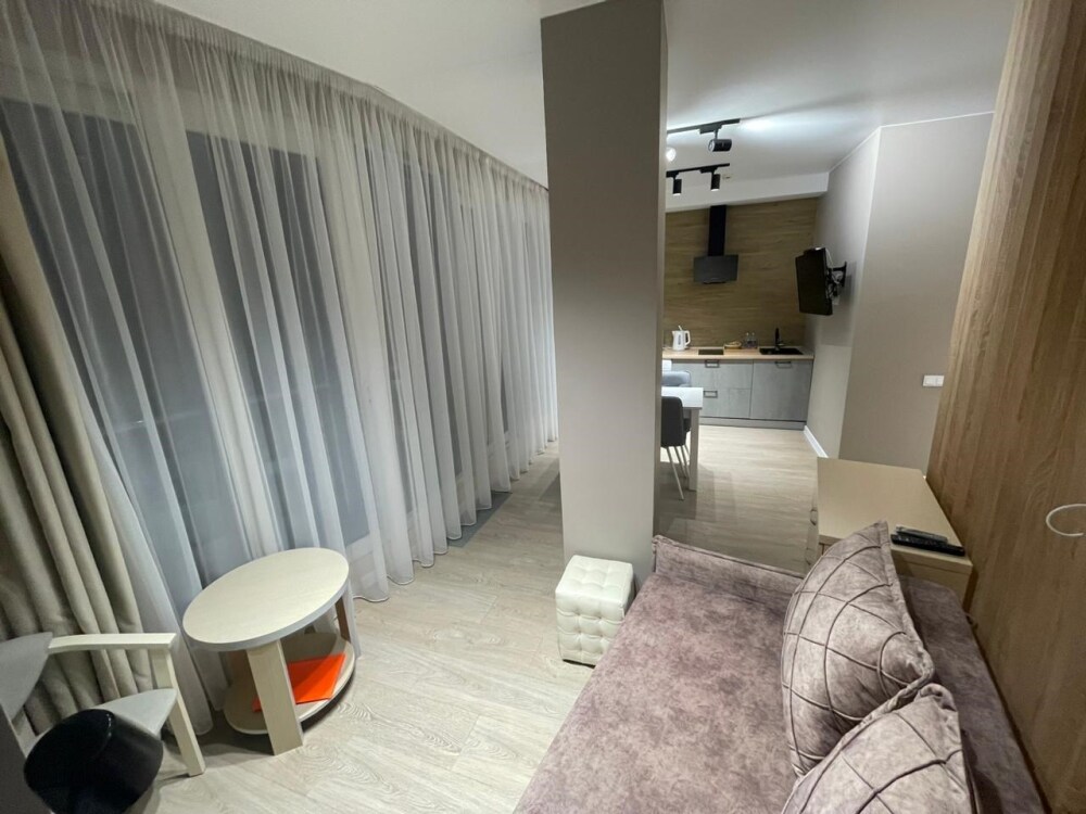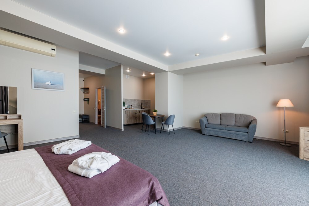 Просторный комфортабельный однокомнатный номер, разделённый на 2 функциональные зоны: гостиную с кухонным уголком и спальню с балконом прямым видом на море. В стоимость входит: вода бутилированная, краснодарский чай, кофе Премиальная косметика Sargan, пользование оборудованным пляжем в летний сезон.