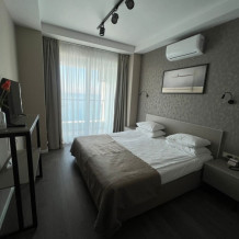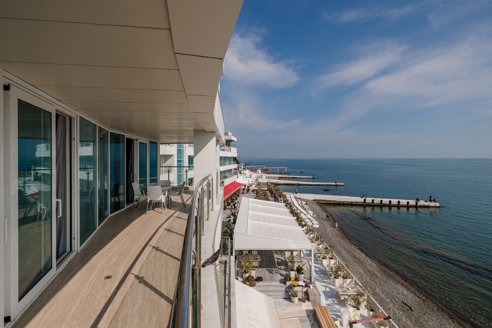 Номер сочетает в себе функциональность и комфорт. Здесь Вы найдете все необходимое для приятного отдыха. Терраса с видом на море, с которой открывается захватывающий вид на лазурные воды и яркие закаты. Вы будете чувствовать себя как дома благодаря приватности, которую обеспечивает отдельный вход в номер. В стоимость входит: вода бутилированная, краснодарский чай, кофе, премиальная косметика Sargan, пользование оборудованным пляжем в летний сезон.