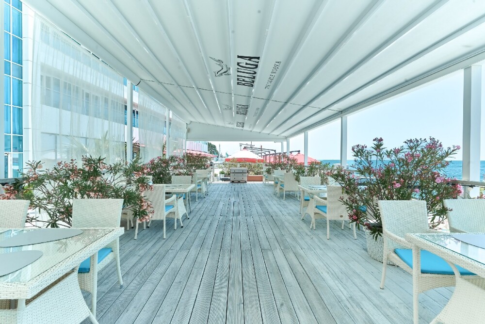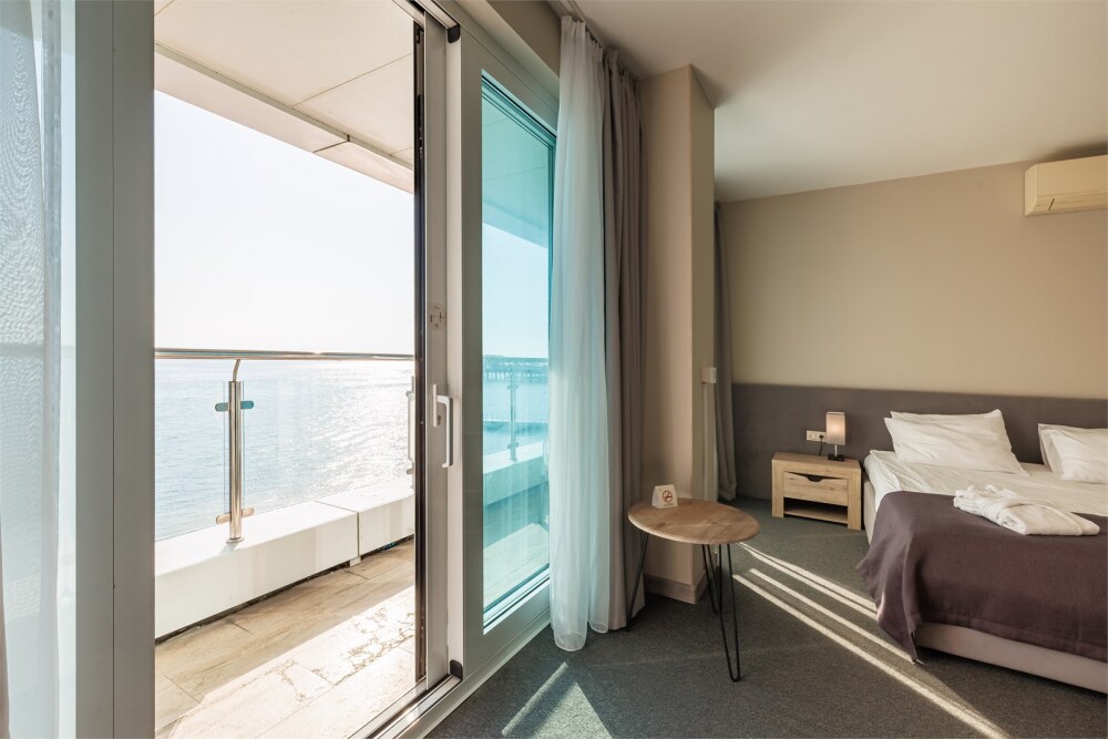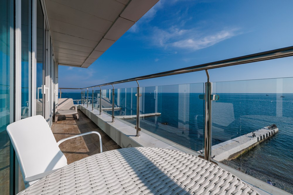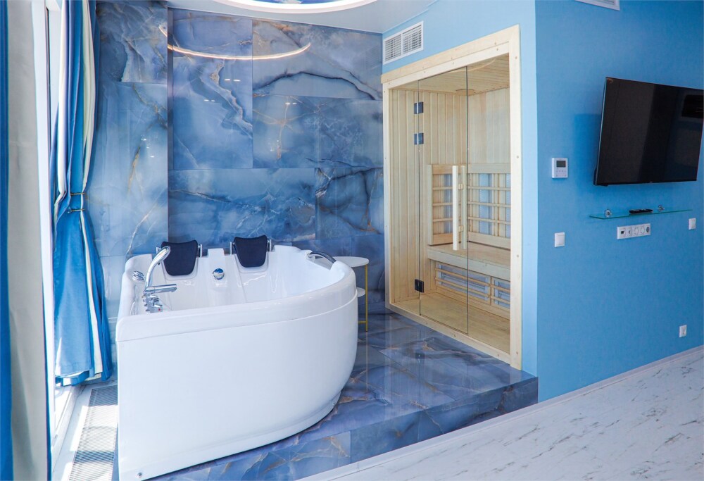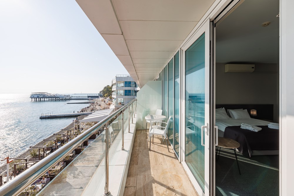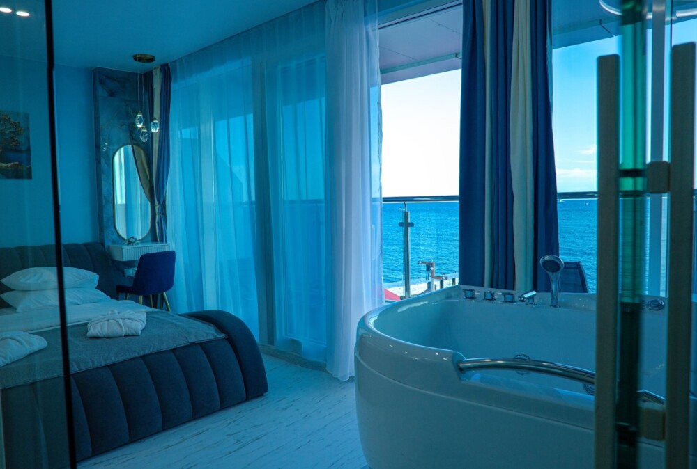 - Просторные номера с видом на море, номера с сауной и джакузи;
