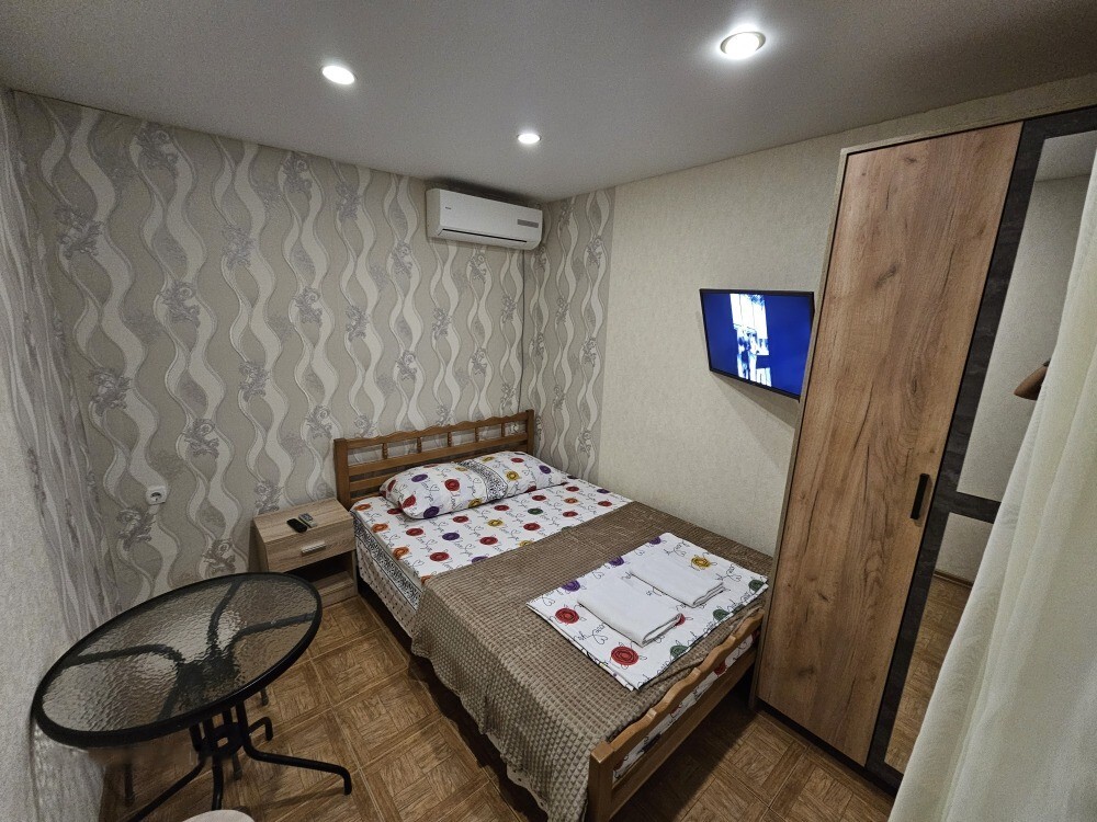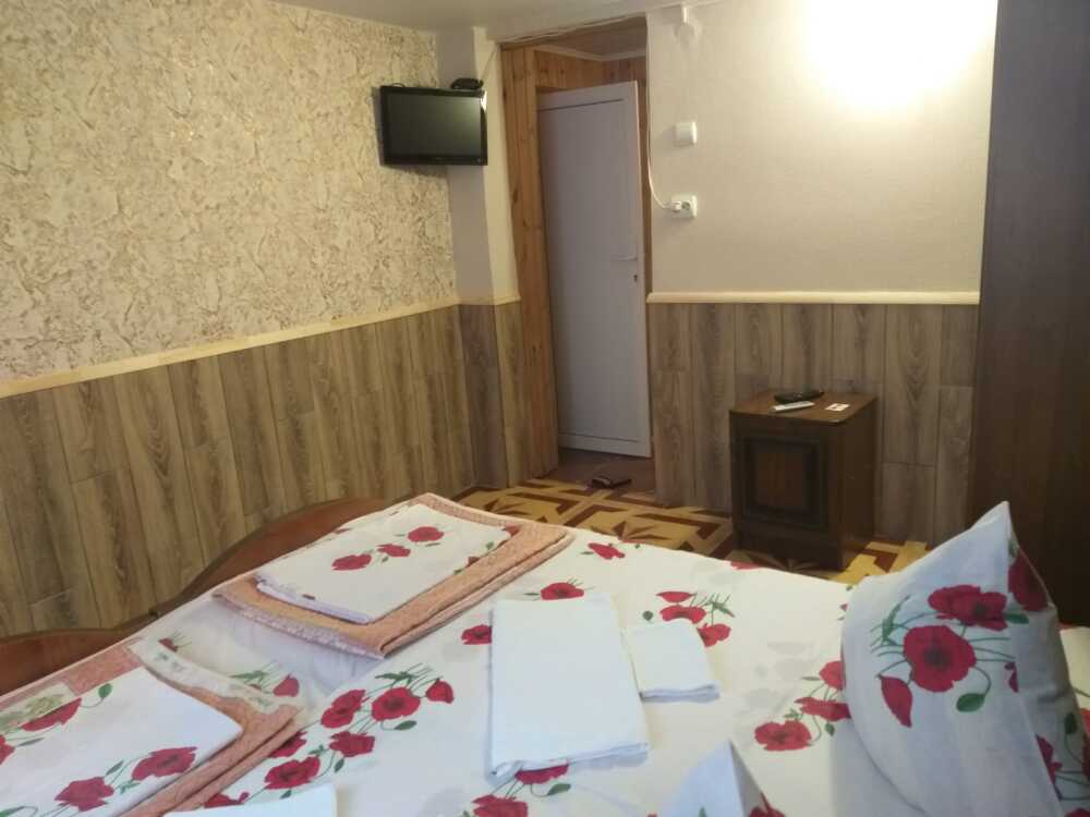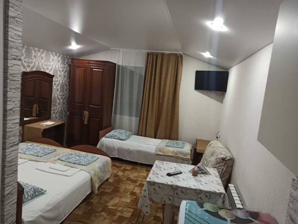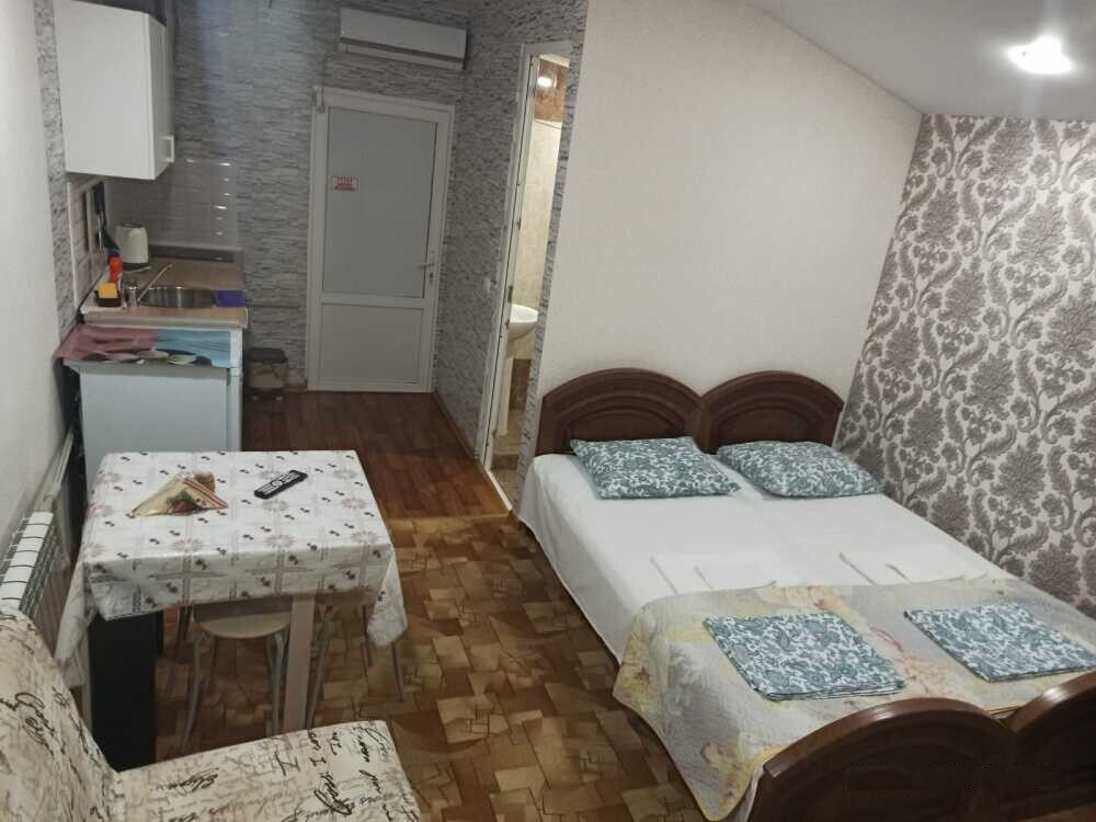 На 1 этаже дома расположена кухня-столовая, где имеется все для самостоятельного приготовления пищи (посуда, газовая плита, бытовая техника). Пользование стиральной машинкой бесплатно. На всей территории wi-fi. Имеется мангальная зона. Есть номера с дополнительными местами. Территория находится под видеонаблюдением.