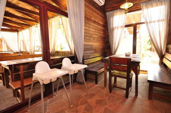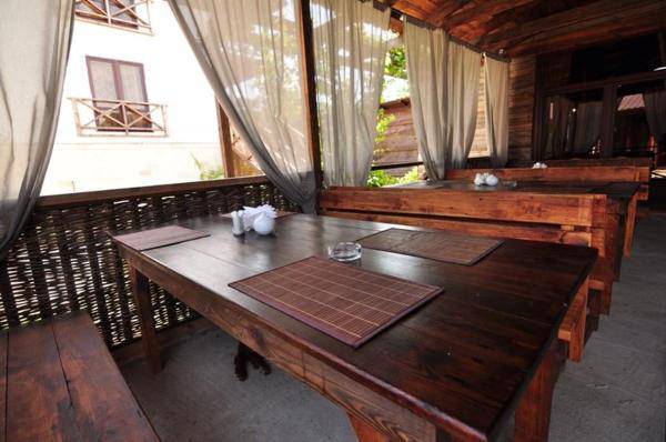 Отель располагает собственной огороженной территорией, насыщенной субтропическими растениями, в беседках с мангалами Вы можете отдохнуть отдельно компанией. Кафе нашего отеля предлагает гостям разнообразное меню кавказской, русской и европейской кухни, блюда, приготовленные на мангале и в большом камине.