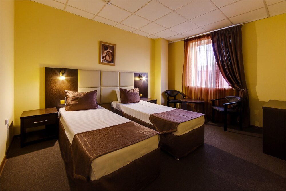 В Вашем распоряжении выбор из 48 номеров европейского уровня, все – различных категорий. «Стандарт» - это пространство и уют, номера с двумя кроватями, если Вы путешествуете с другом или коллегой, «Люкс» - стильные, просторные двухкомнатные номера – отличный выбор для молодоженов или влюбленных. Мы уверены: дешевый отель – не значит плохой, дешевизна в отелях нашей сети – это, прежде всего, уважение к нашим клиентам.