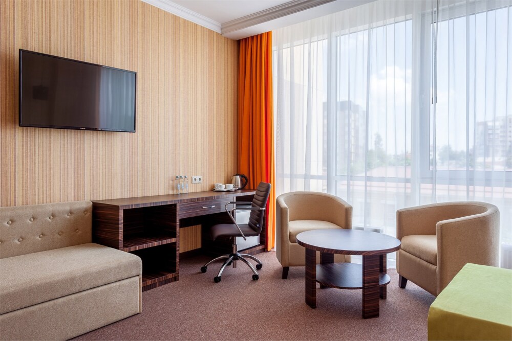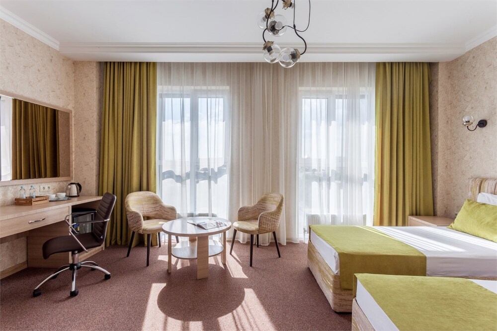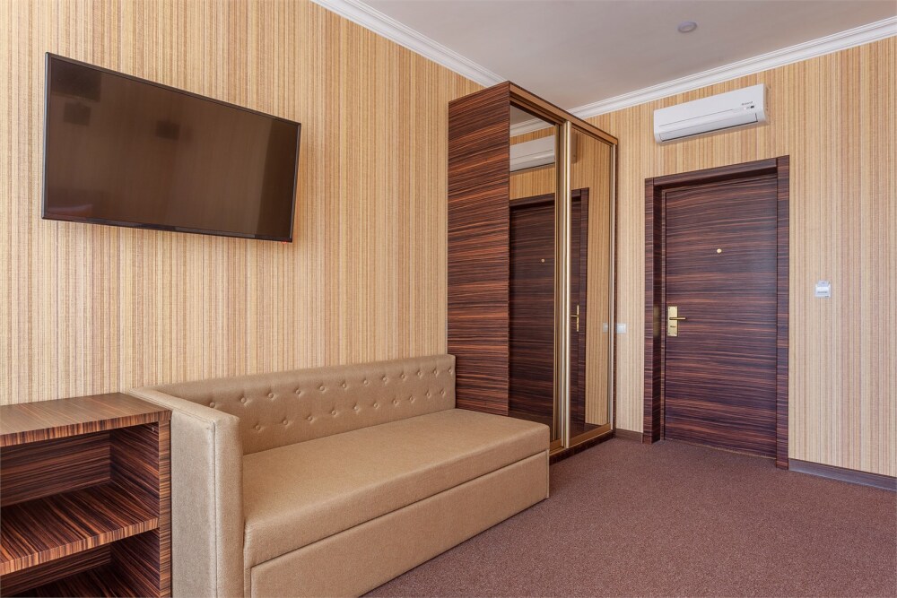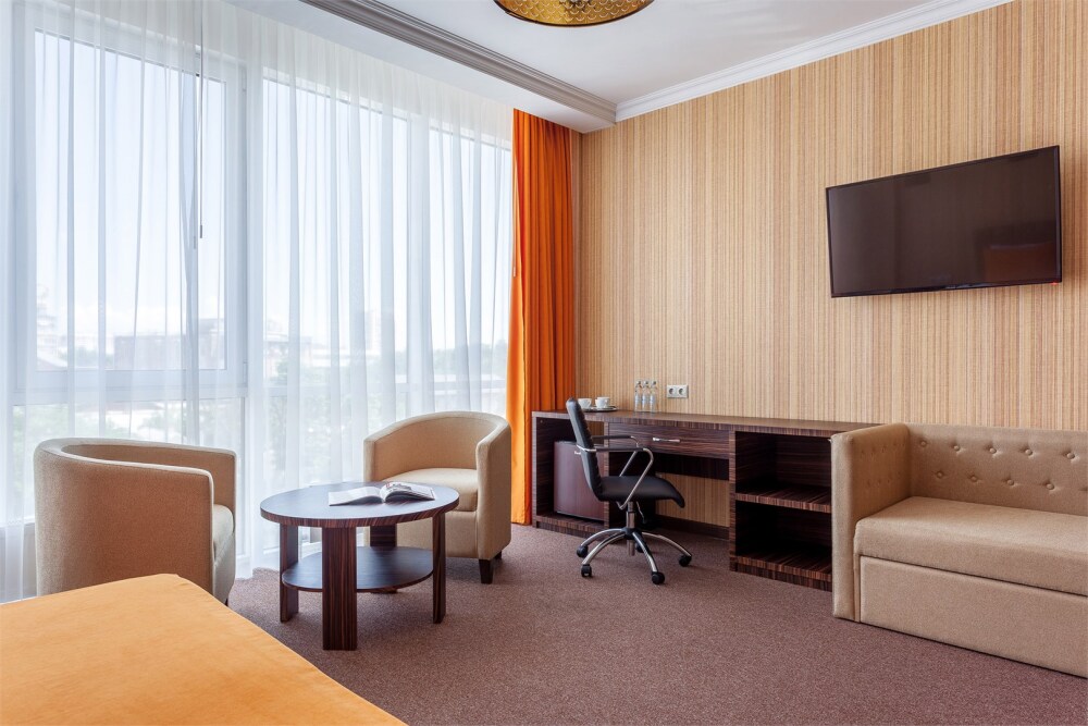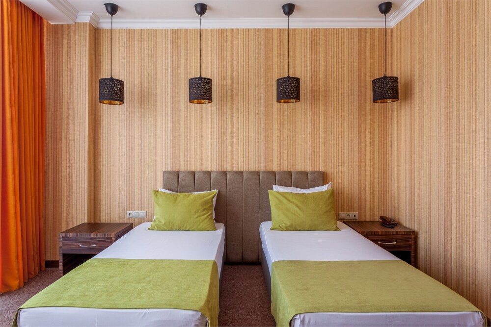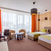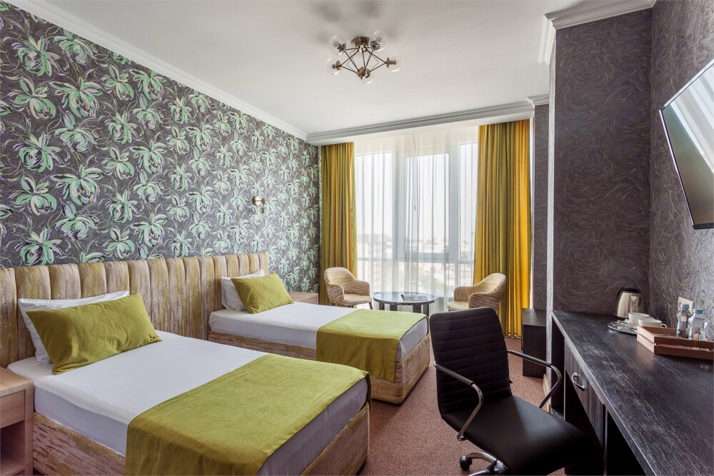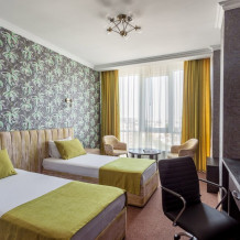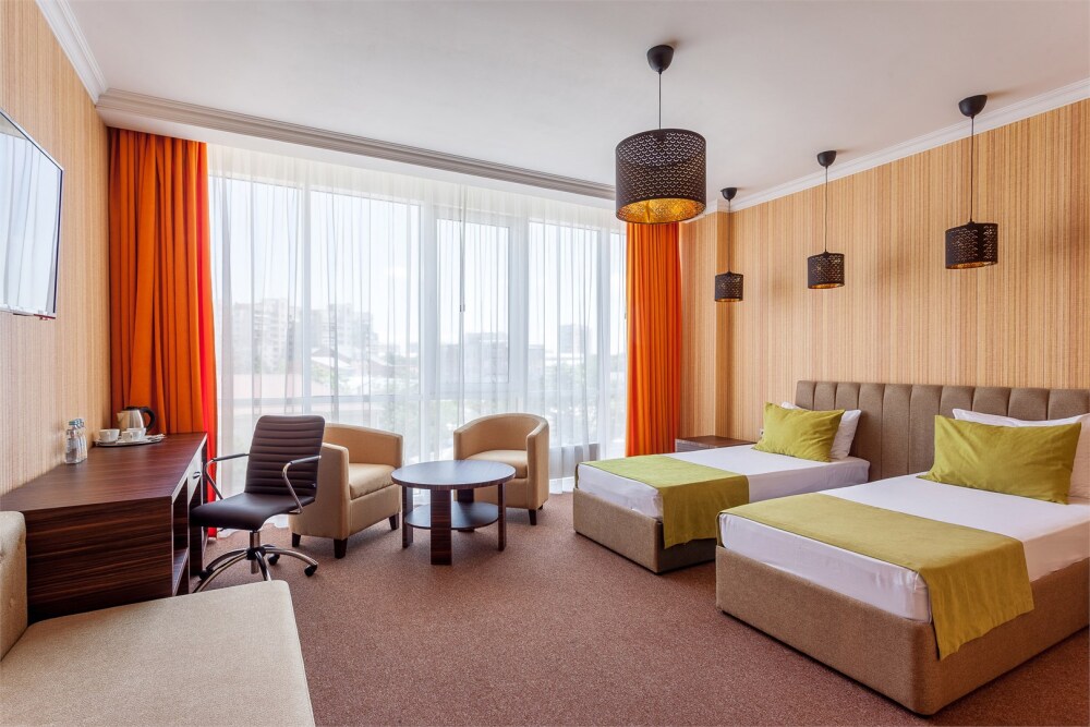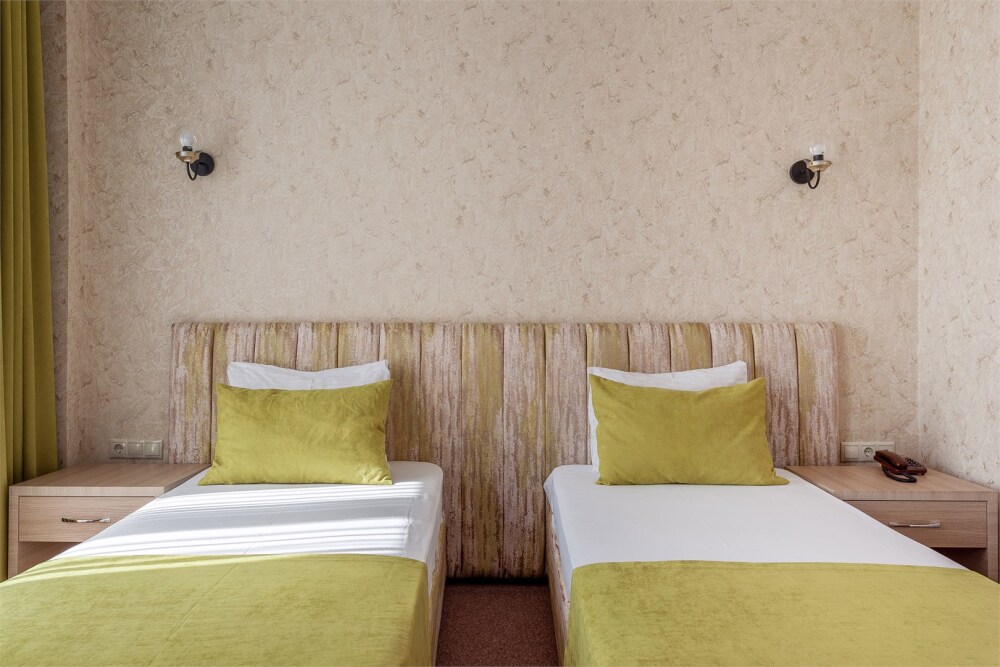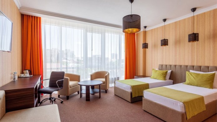 В Вашем распоряжении выбор из 57 номеров европейского уровня, различных категорий. «Стандарт» - это пространство и уют, номера с двумя кроватями, если Вы путешествуете с другом или коллегой, «Люкс» - стильные, просторные номера – отличный выбор для молодоженов или влюбленных, а также людей, кто не привык отказывать себе в комфорте. Мы уверены: дешевый отель – не значит плохой, низкие цены в отелях нашей сети – это, прежде всего, уважение к нашим клиентам.