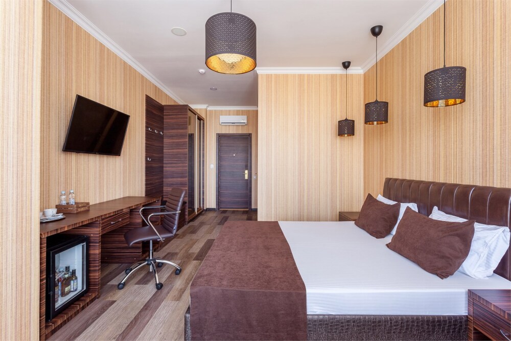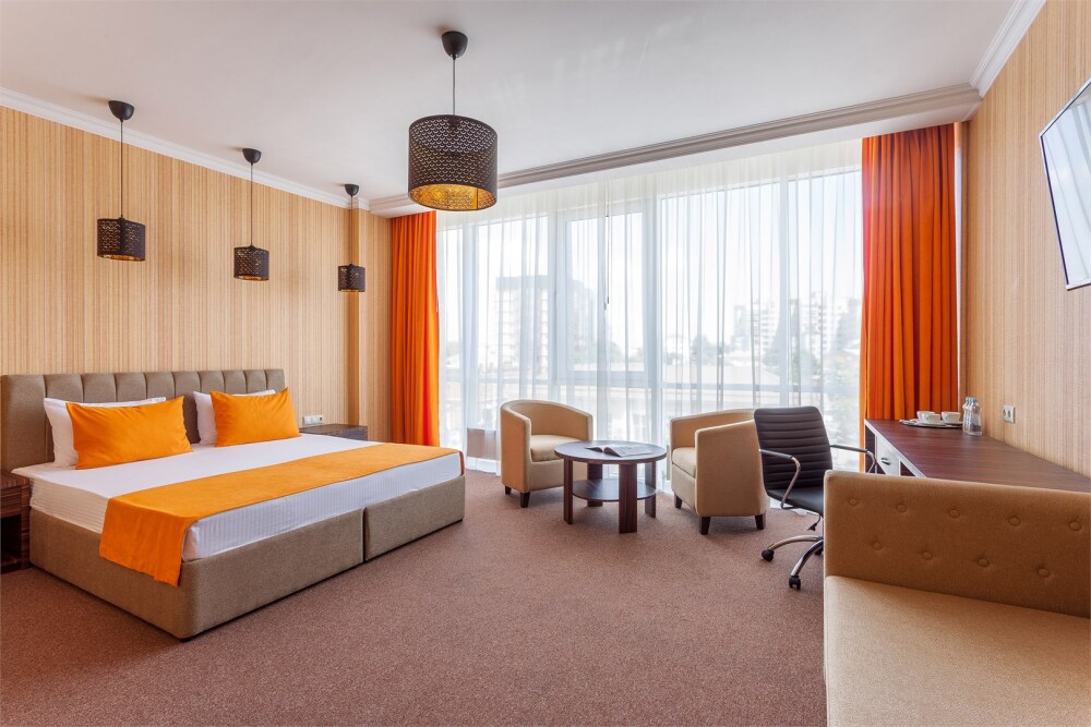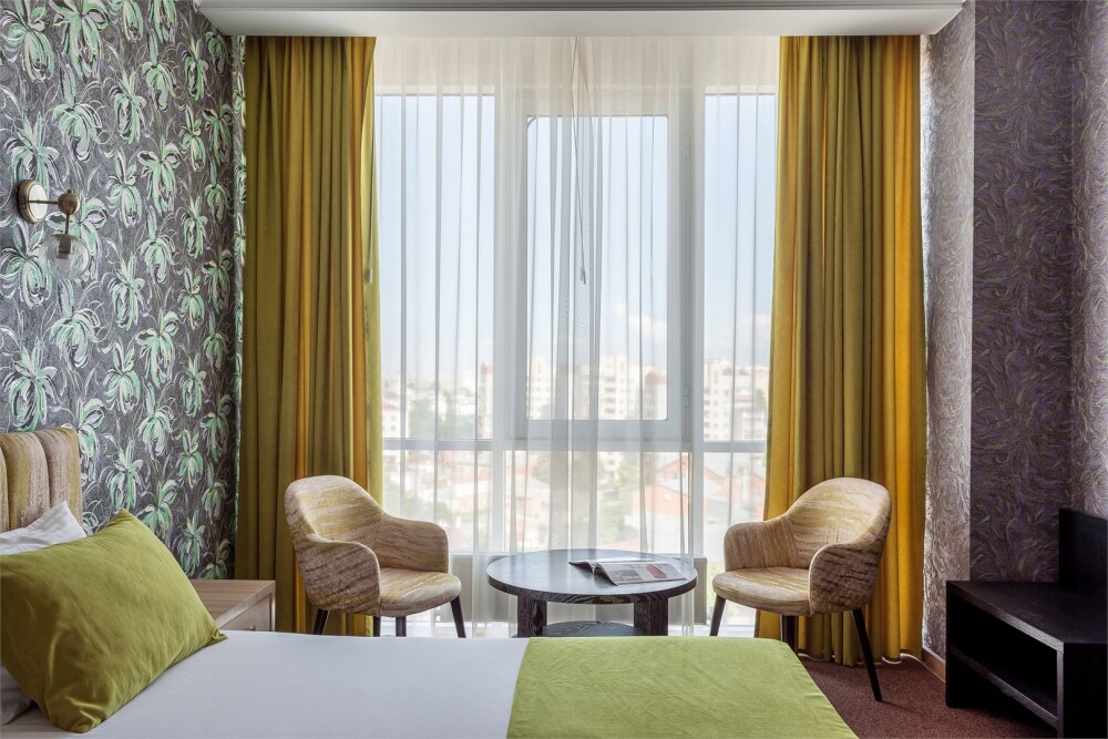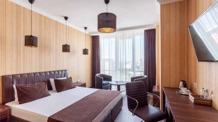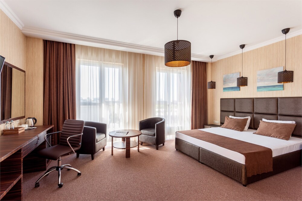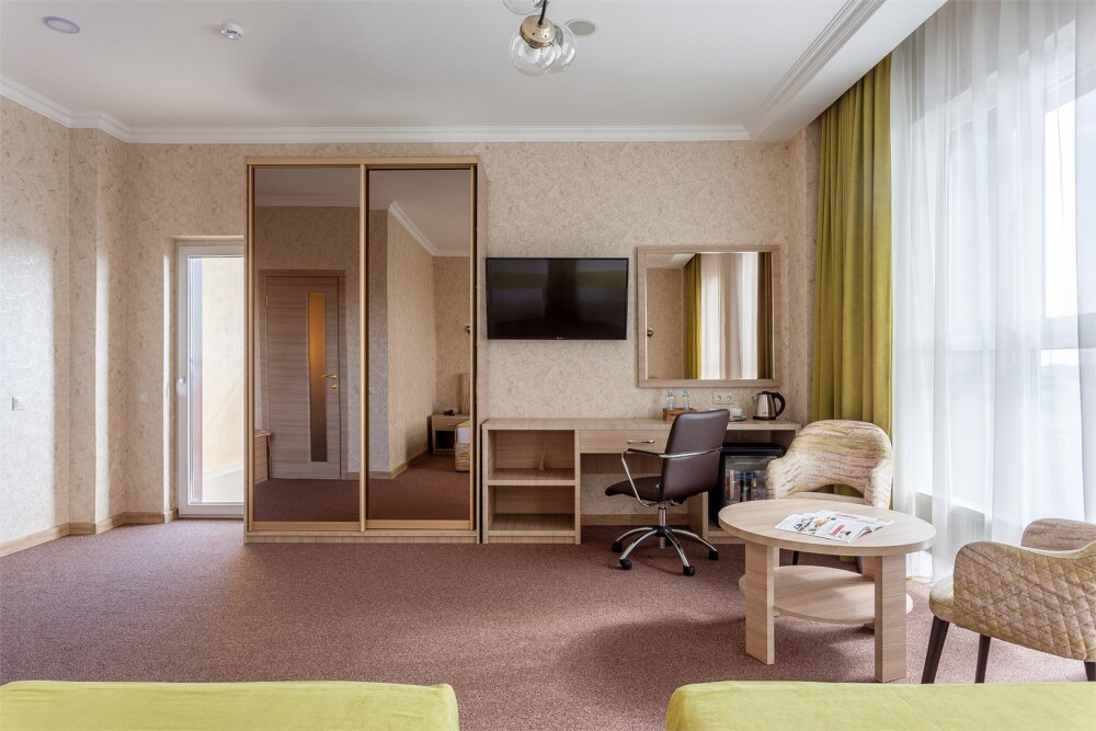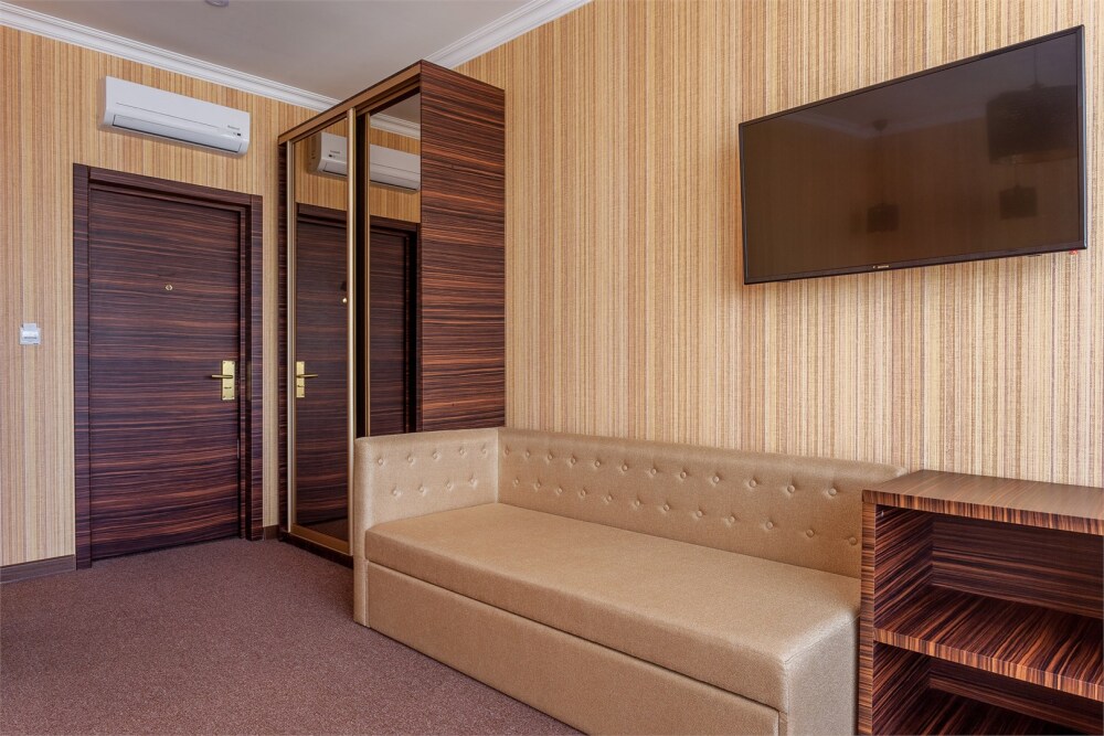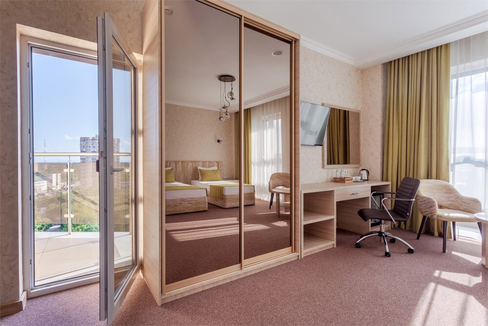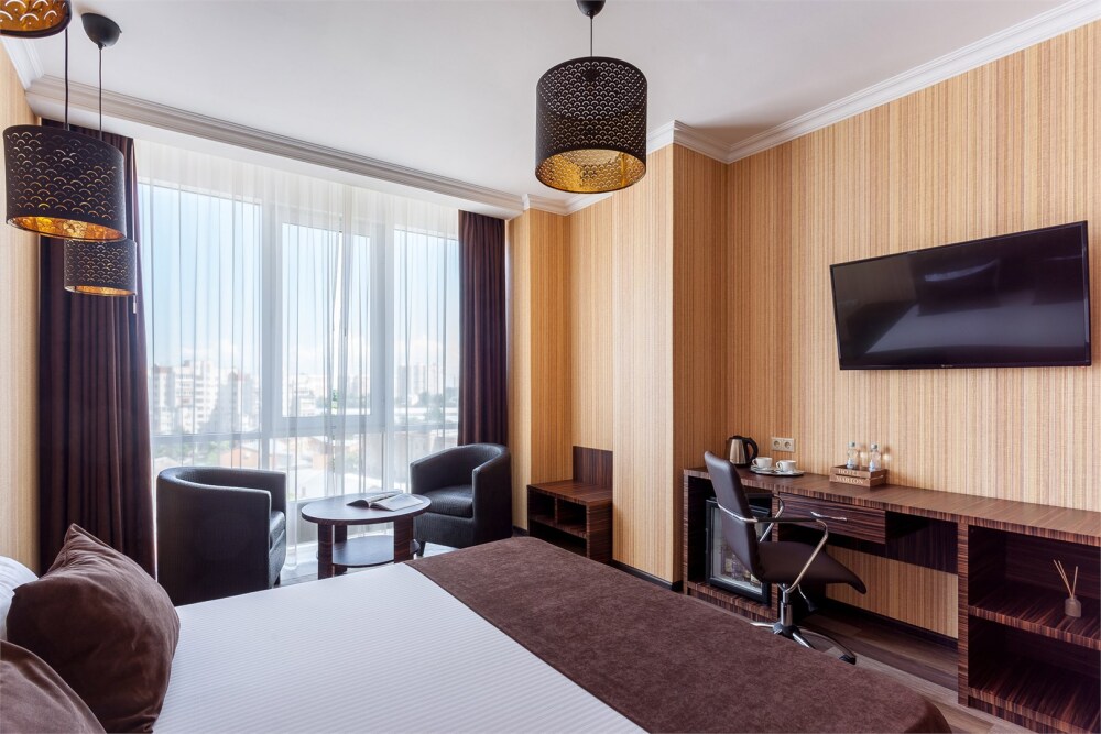 В Вашем распоряжении выбор из 57 номеров европейского уровня, различных категорий. «Стандарт» - это пространство и уют, номера с двумя кроватями, если Вы путешествуете с другом или коллегой, «Люкс» - стильные, просторные номера – отличный выбор для молодоженов или влюбленных, а также людей, кто не привык отказывать себе в комфорте. Мы уверены: дешевый отель – не значит плохой, низкие цены в отелях нашей сети – это, прежде всего, уважение к нашим клиентам.