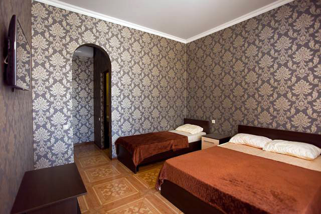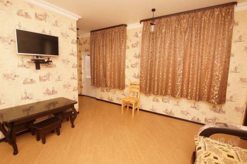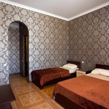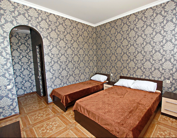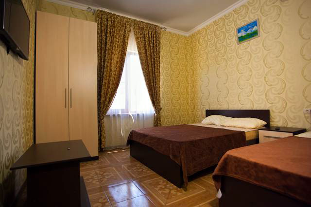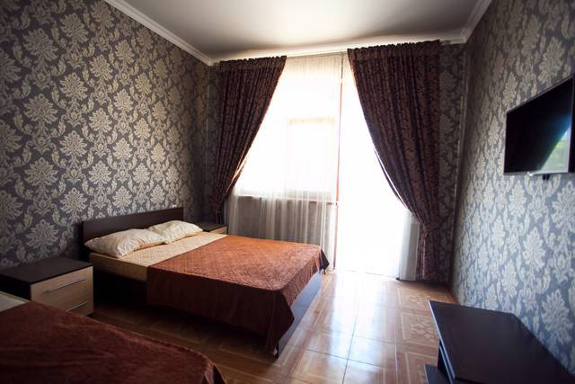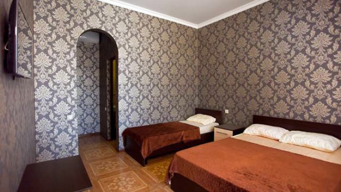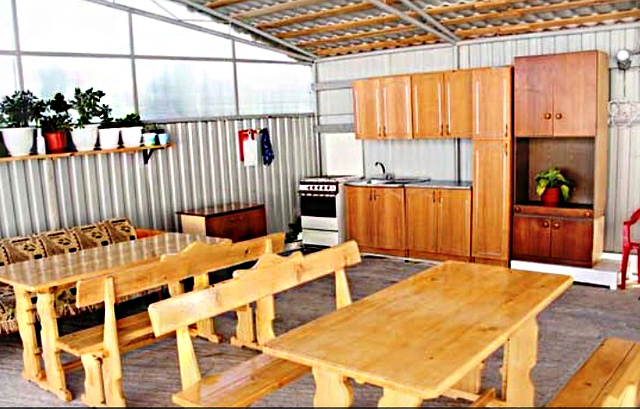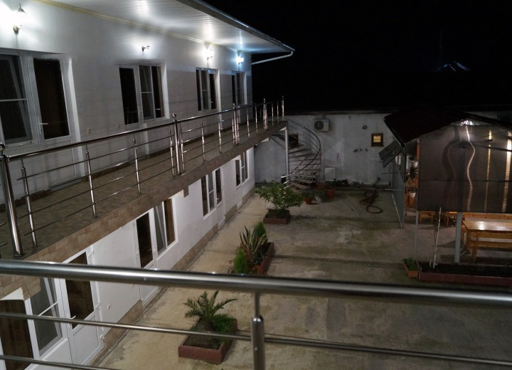 К Вашим услугам большой двор с бесплатной парковкой для машин, летняя оборудованная кухня для самостоятельного приготовления пищи с большим плазменным телевизором и номера с удобствами в двухэтажном здании. Во дворе есть мангал и беседка для отдыха, где можно приятно провести время в кругу семьи или дружной компанией. Холодная и горячая вода постоянно.