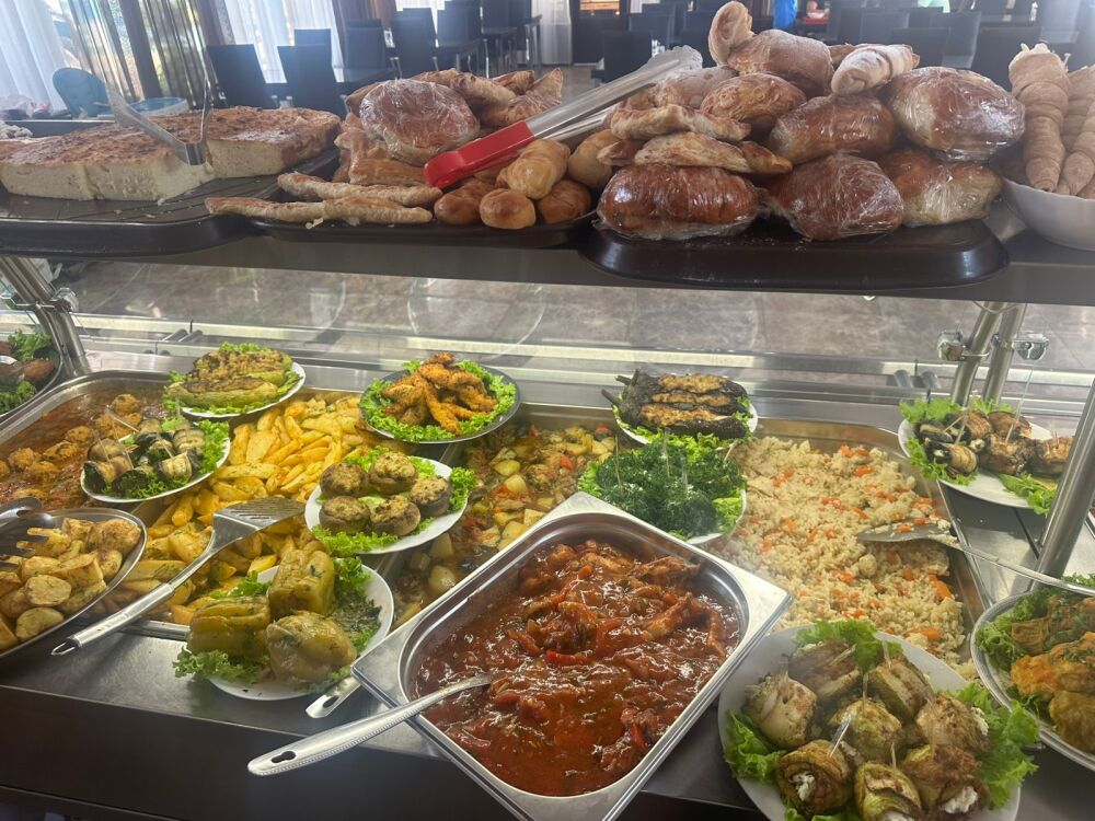Мы находимся в двух минутах ходьбы от пляжа. Дорога к морю проходит по тихой зеленой улице, абсолютно ровной и прямой. Пляж галечный, немноголюдный, пляжная полоса достаточно широкая.