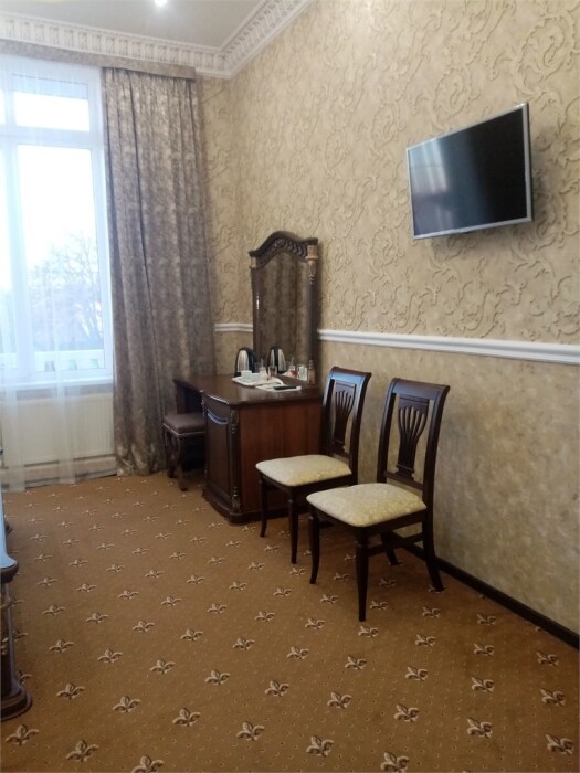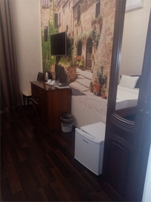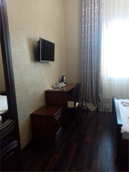 Стандартный номер для 1-2 гостей. В номере: 1 двуспальная кровать, телевизор, стол, шкаф для одежды, внутренний телефон, холодильник, бесплатный Wi-Fi. В ванной: душевая кабина, фен, Предоставляется комплект одноразовых туалетных принадлежностей: тапочки, зубной набор, мыло, гель для душа, шампунь-кондиционер, рожок для обуви.