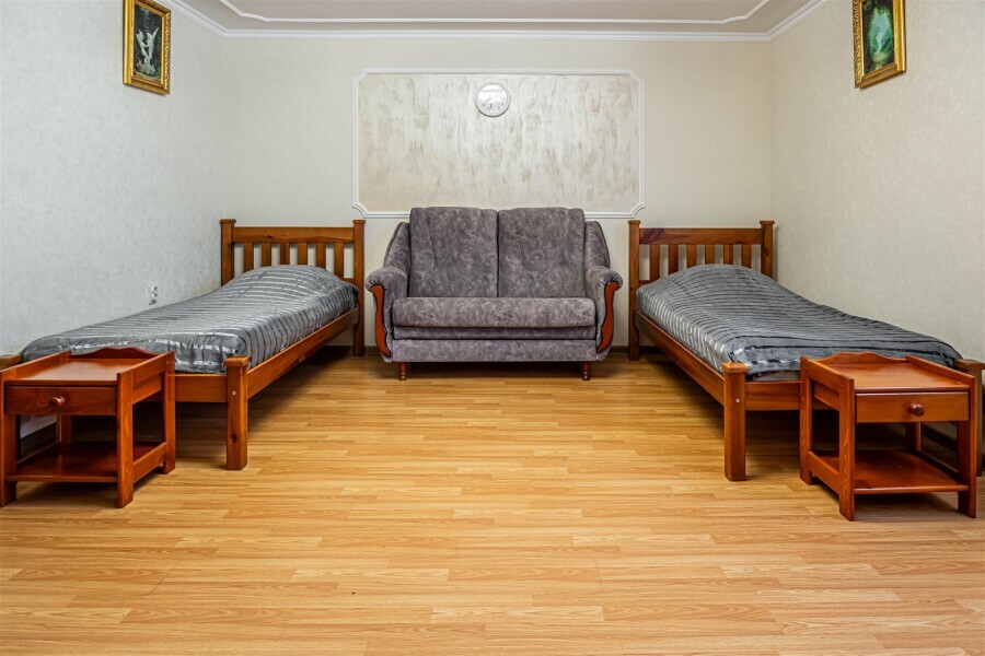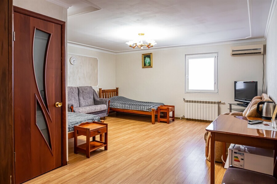 Этот номер сочетает в себе комфорт и уют. Номер предназначен для размещения 1 или 6 человек и имеет общую площадь 35 кв.м. Современное оснащение номера не оставит сомнений в правильности Вашего выбора.