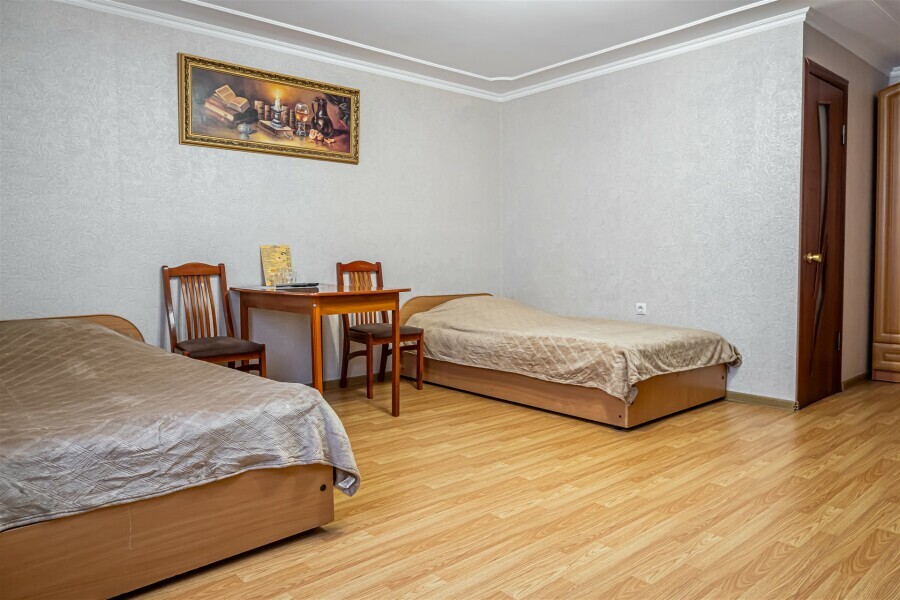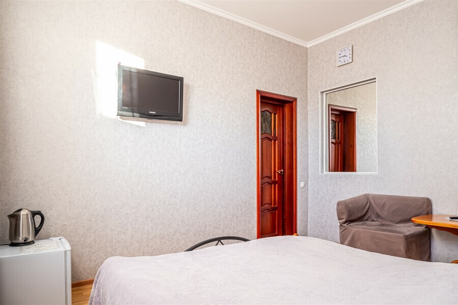 Данная категория однокомнатных номеров с общей площадью 20.8 кв. м. оборудована всем необходимым для работы и отдыха. Комфорт и удовольствие от пребывания в отеле Вам гарантированно обеспечат удобная мебель, впечатляющий вид на экологически чистый район Ставрополя, современная техника и многое другое.