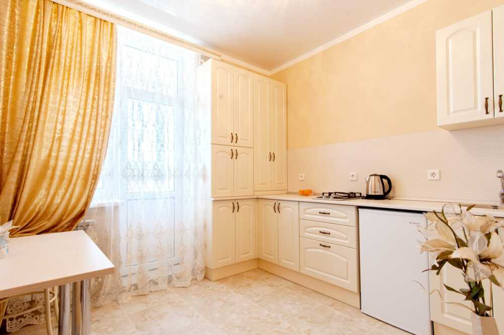 Кухни оснащены всем необходимым для самостоятельного приготовления пищи, столовые приборы, посуда, бытовая техника. Большой балкон через зал и кухню, в каждом апартаменте.