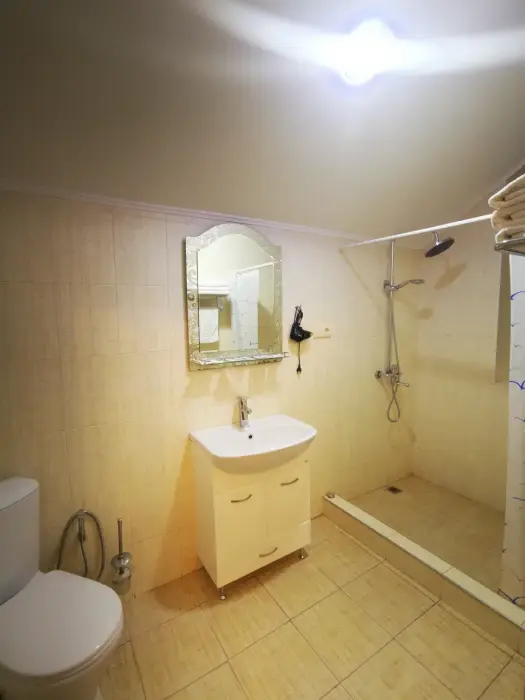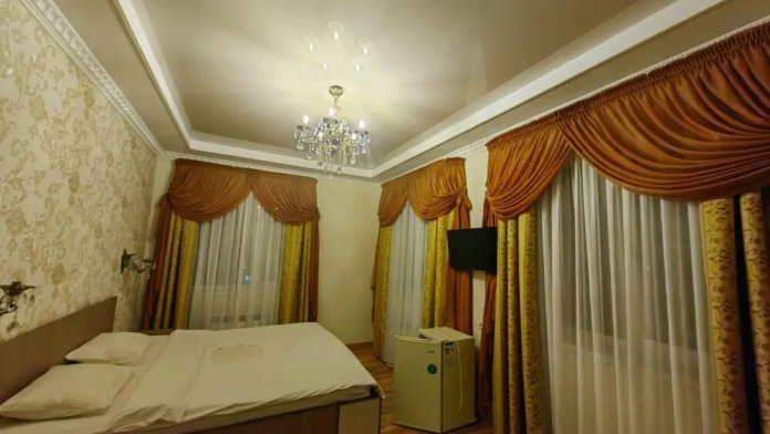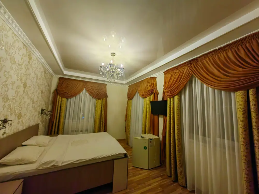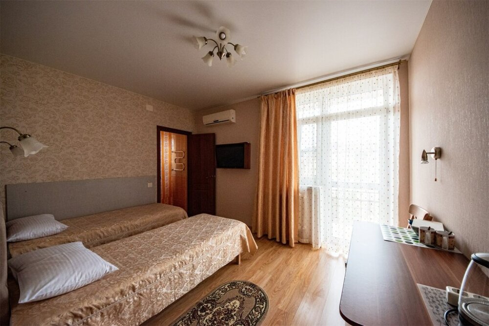 В каждом номере есть: кондиционер, телевизор, холодильник, чайник, санузел с душем, фен, гигиенические средства и набор полотенец, балкон (в некоторых категориях), плотные шторы, вид на горы.