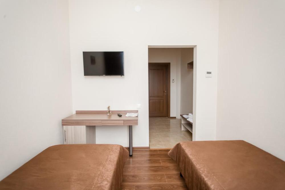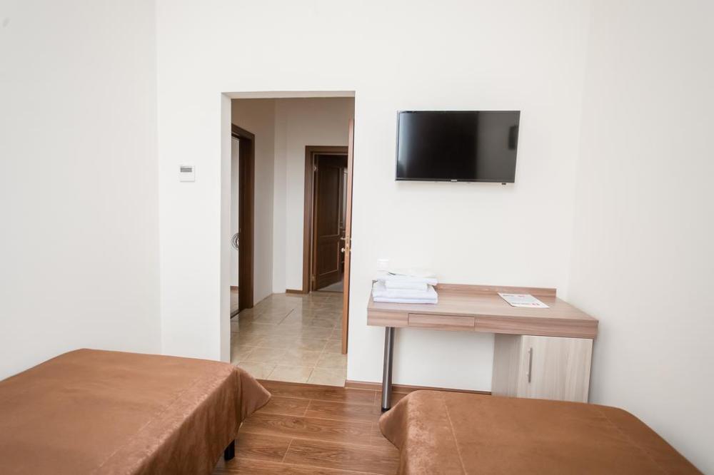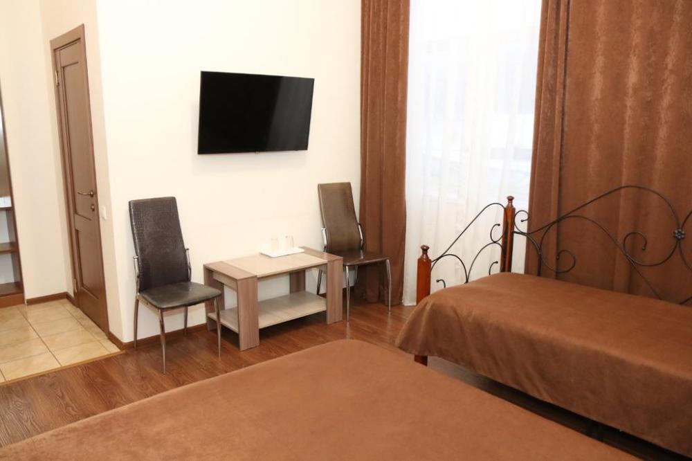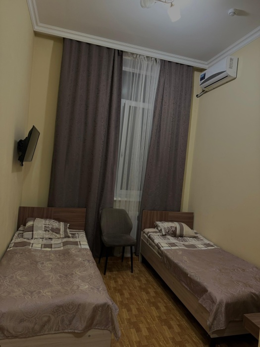 Двухместный номер стандарт для размещения до 2-х гостей. В номере: две односпальные кровати, прикроватные тумбочки, телевизор, ванная комната с душем, туалетно-косметические принадлежности, полотенца.