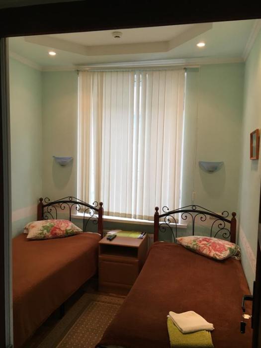 В номере две односпальные кровати или одна двухспальная кровать с удобными матрасами. Душевая и туалетные комнаты располагаются напротив номера.