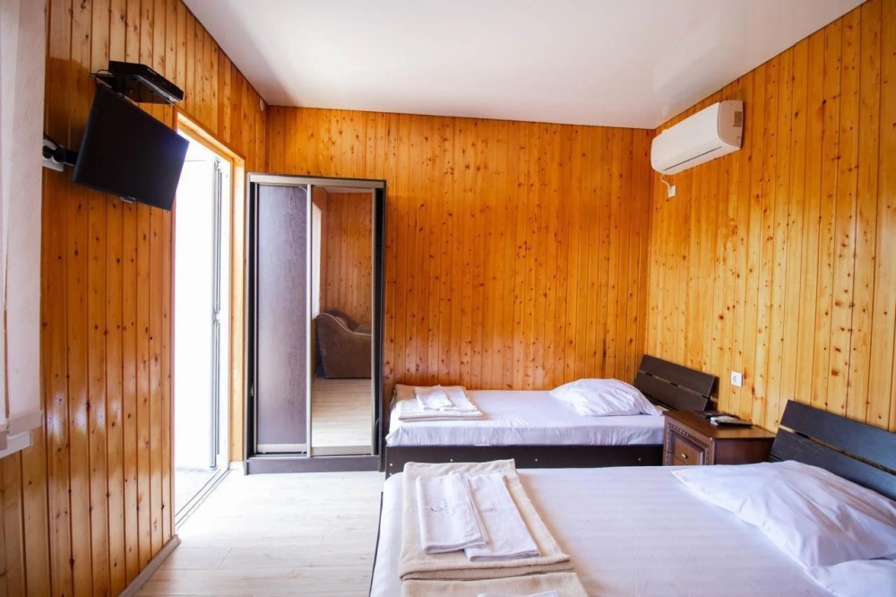 Для наших гостей мы предлагаем уютные коттеджные домики, полностью оборудованные для комфортного проживания. В каждом номере есть фен, установлен телевизор, WI-FI, а также имеется кондиционер и ванная комната.