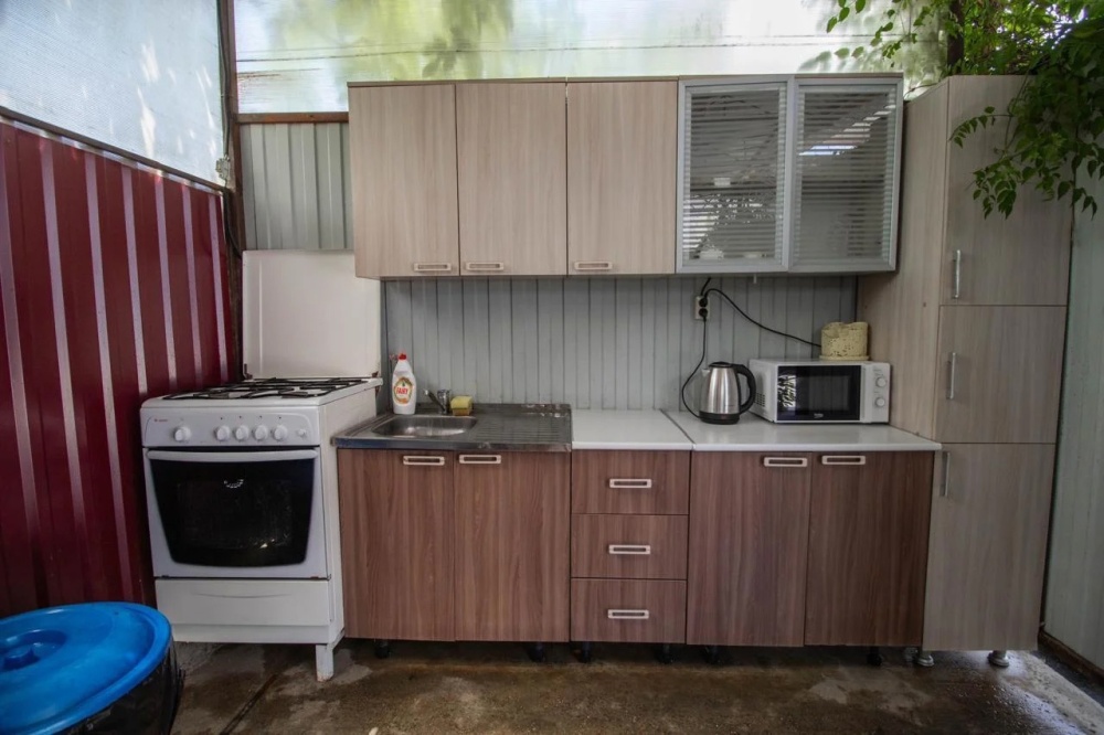 На территории гостевого дома есть общая кухня-веранда, полностью оборудованная для самостоятельного приготовления пищи, стиральная машина, сушилки для одежды, гладильный уголок, зона барбекю. Территория ограждена, в стоимость входит парковка Вашего автомобиля.