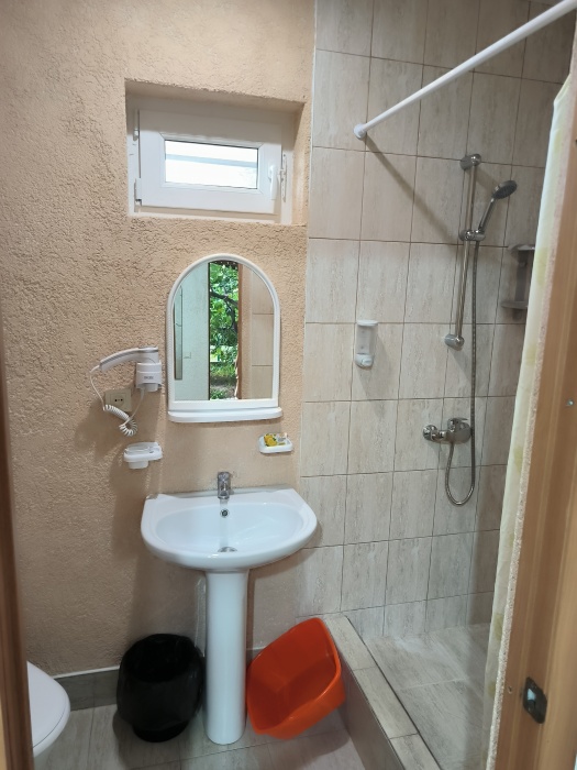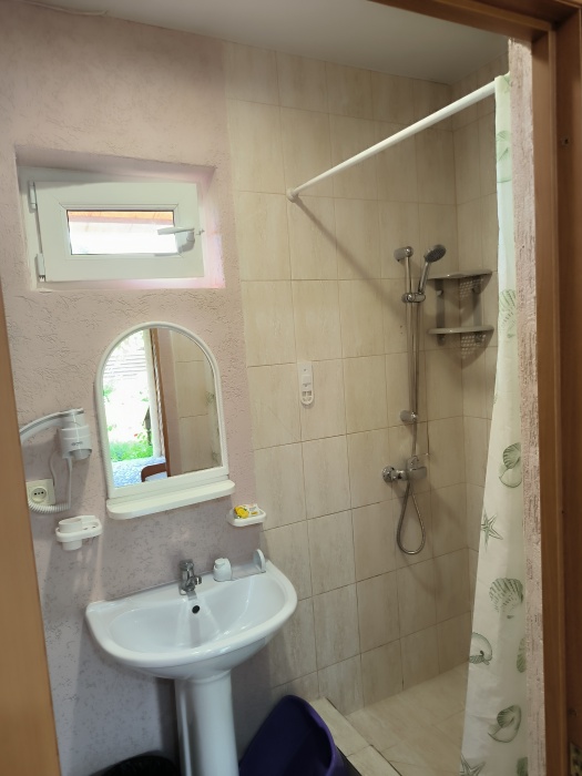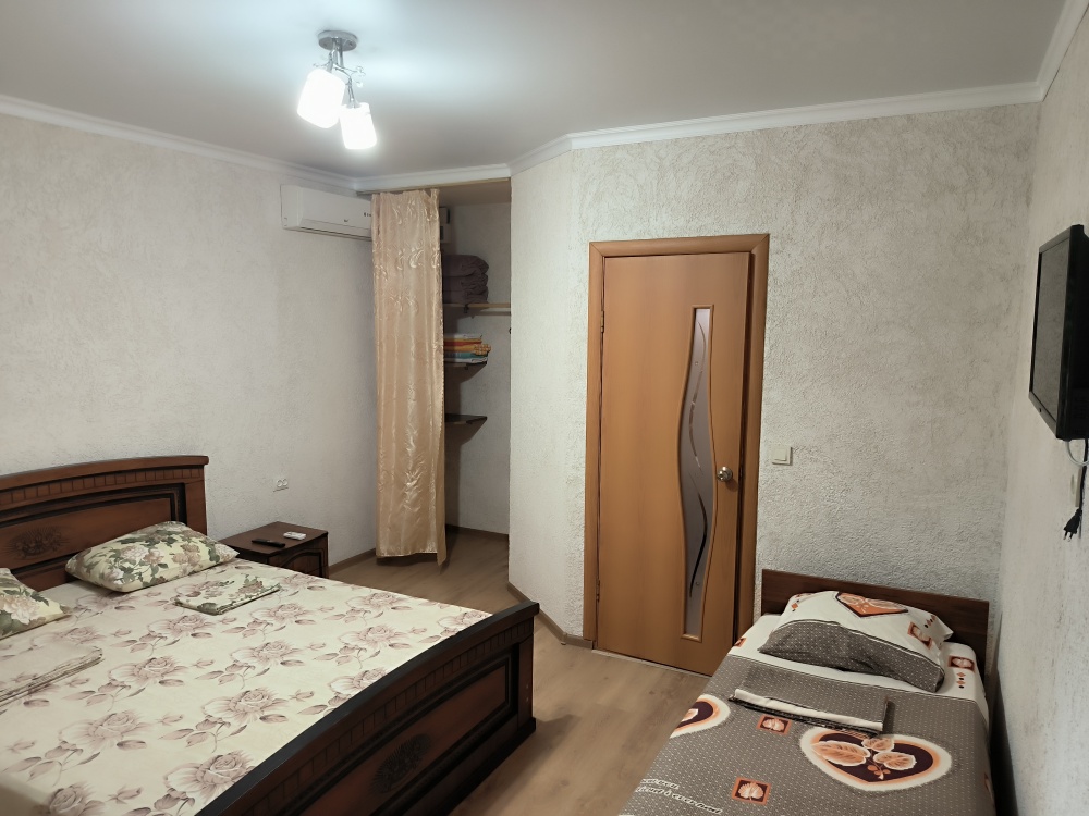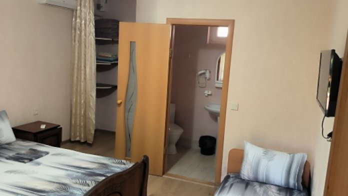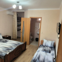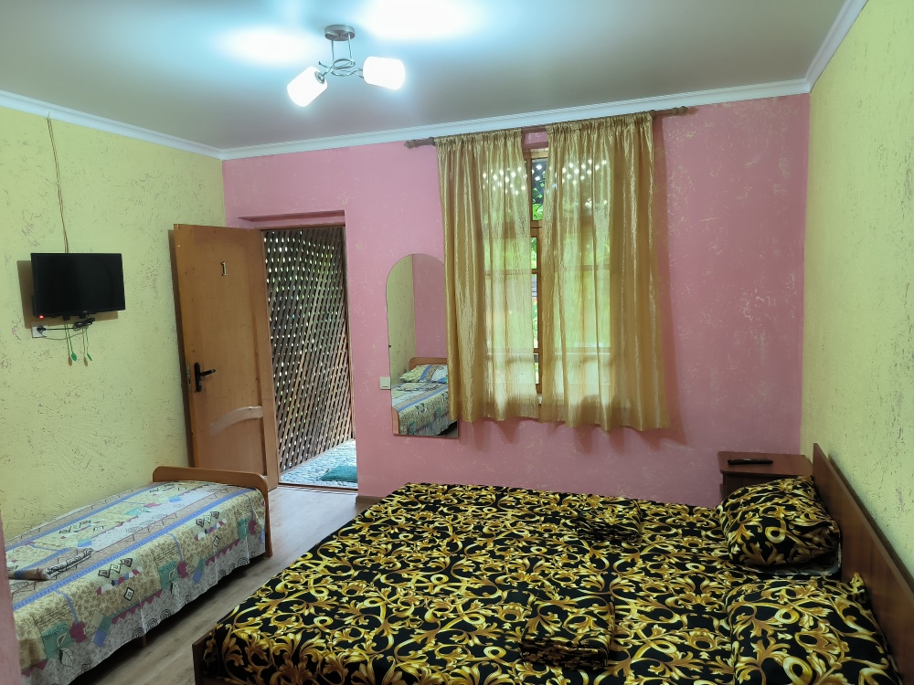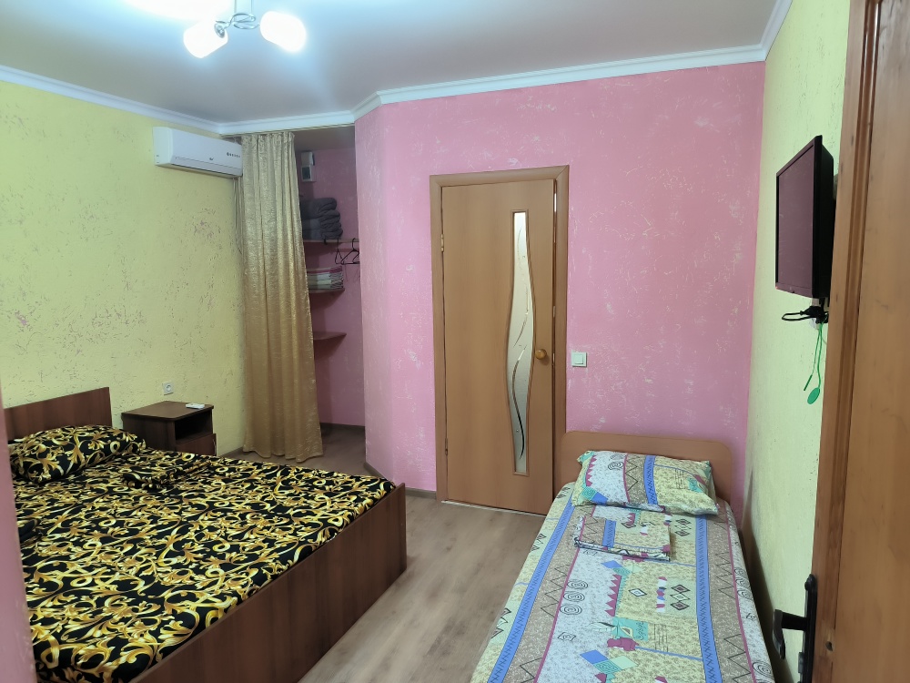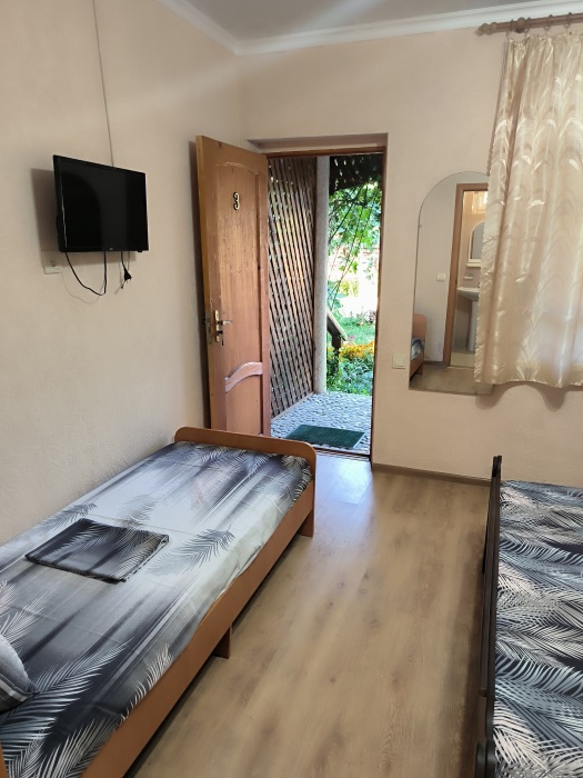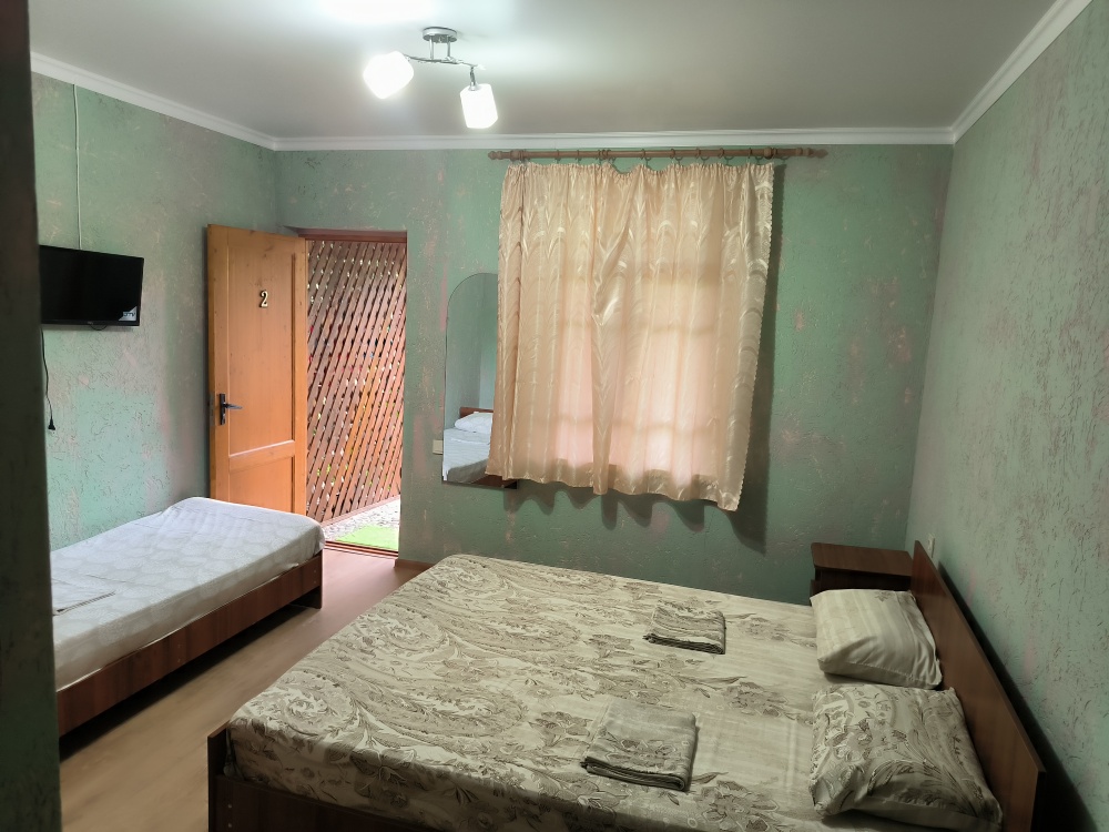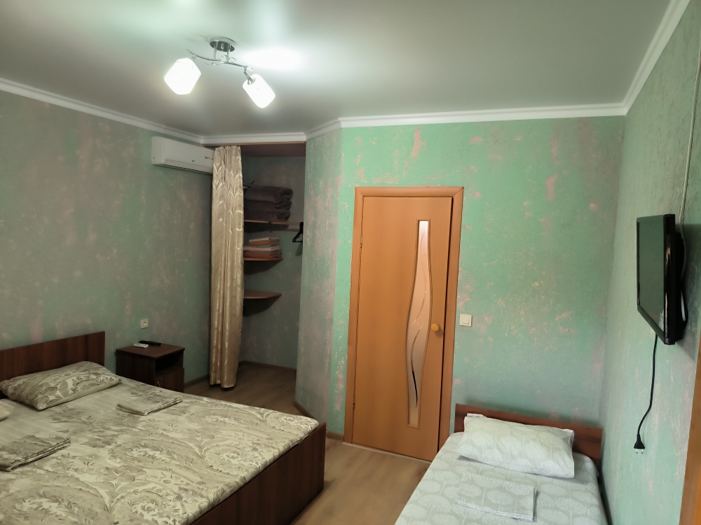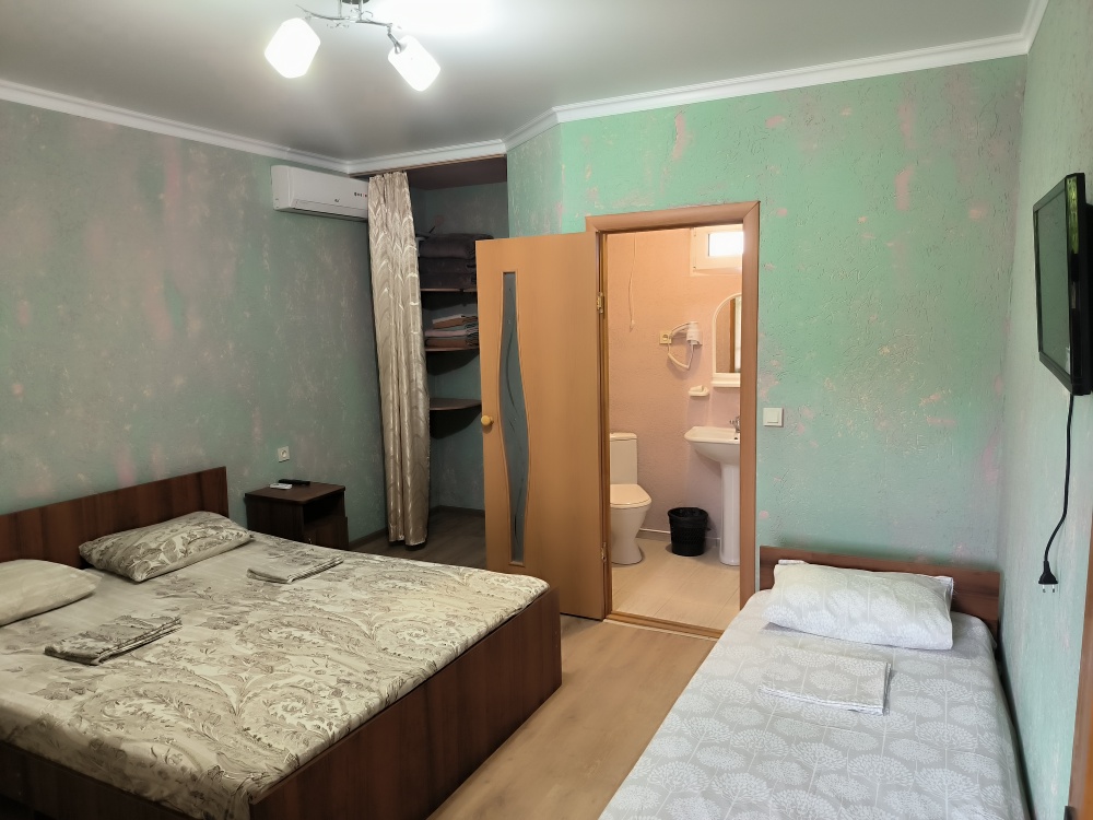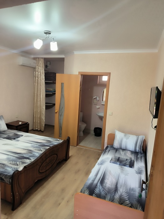 В доме сдаются 2,3-местные номера со всеми удобствами: ТВ с плоским экраном, кондиционер, шкаф для одежды, собственный совмещенный санузел.