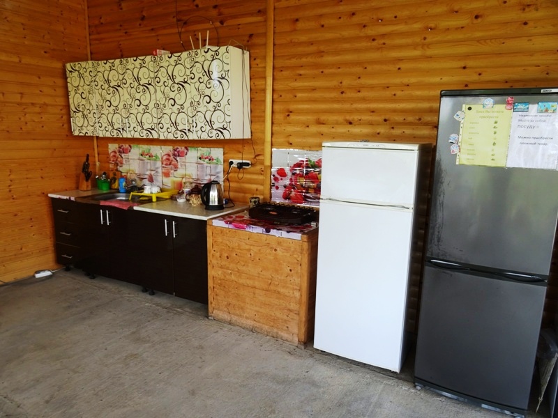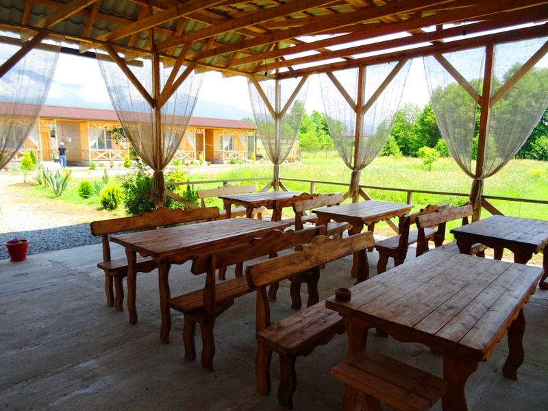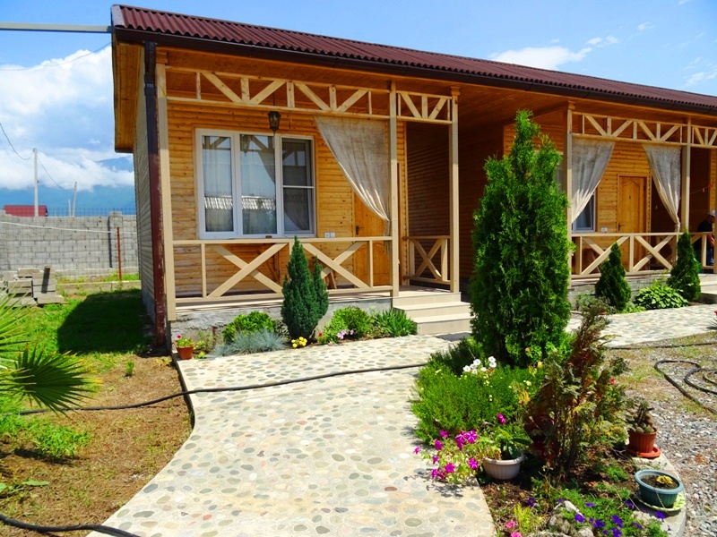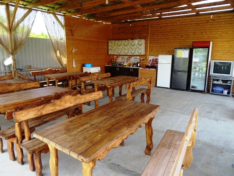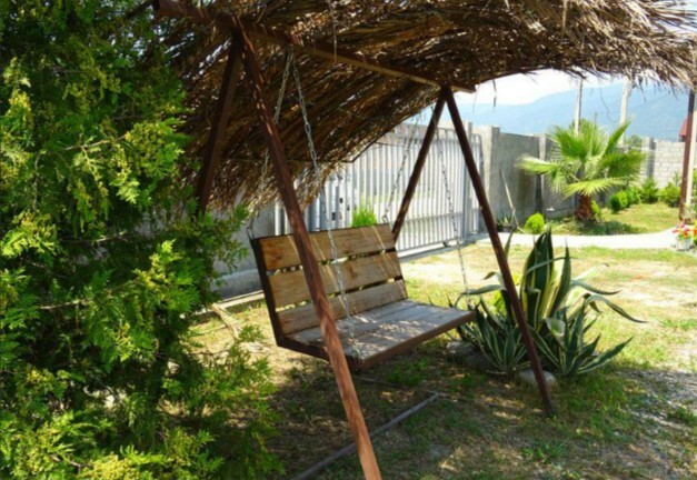 На территории много места для парковки автомобилей, не тесно для отдыха и времяпрепровождения. Для детей детская песочница, качели, каркасный бассейн. В продаже всегда имеется домашнее вино, чача, коньяк, варенье и соки. Имеется общая кухня-столовая оборудованная всем необходимым инвентарем, обустроенная пикниковая зона в тени деревьев.