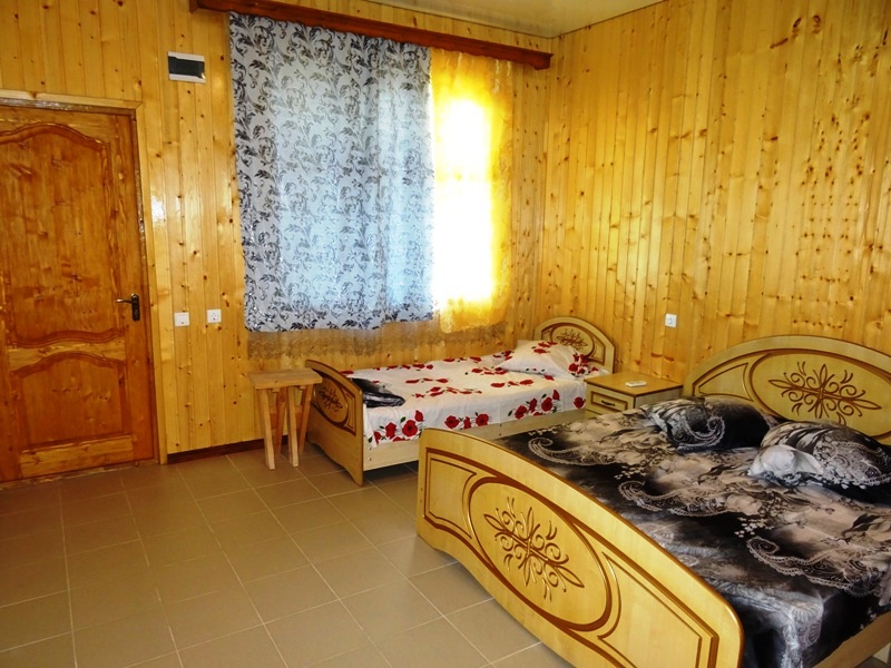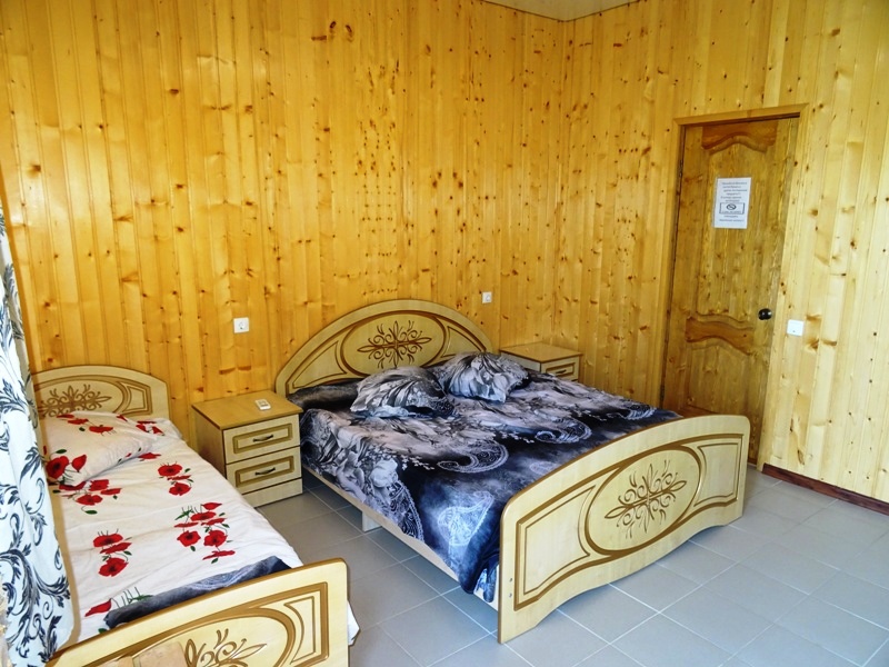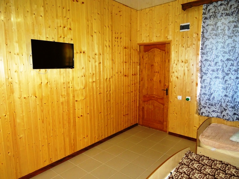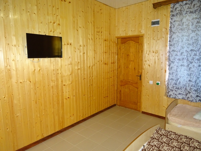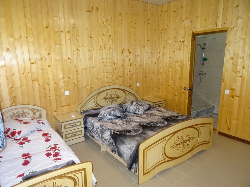 Номера большие, с санузлами, телевизорами и сплит-системами. Стены отделаны пихтовой доской, которая погрузит вас в деревенскую атмосферу. На полах уложен кафель, что придаёт летом прохладу и не мешает лишними звуками, которые могут создаваться при ночном передвижении по комнате.