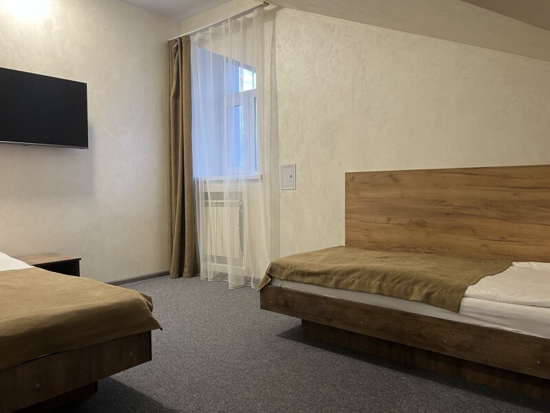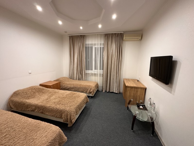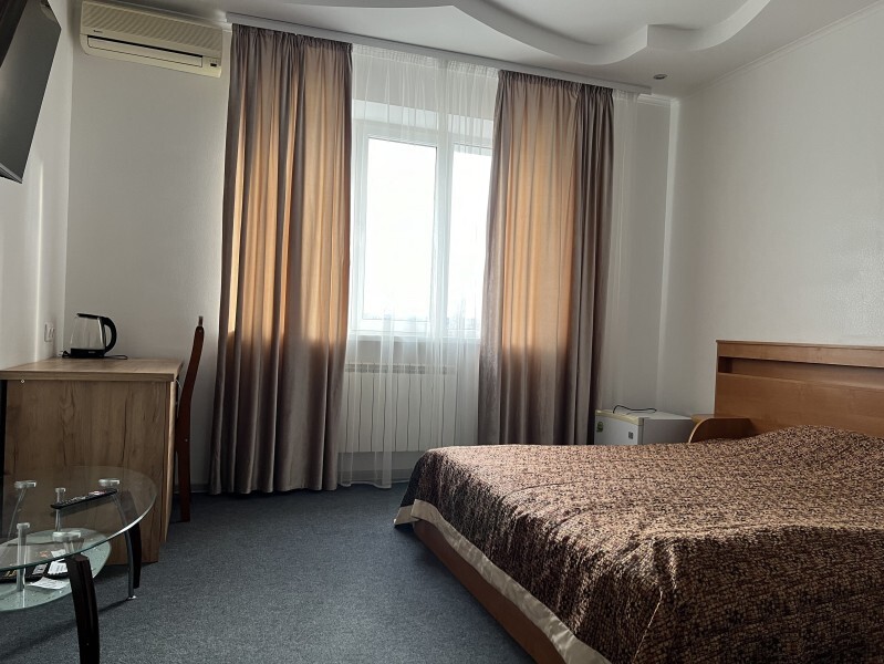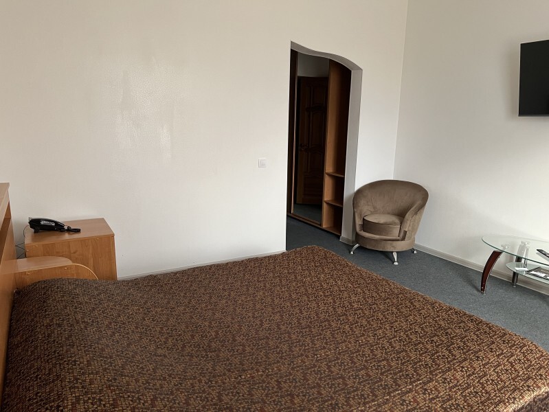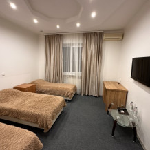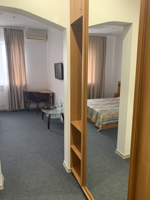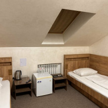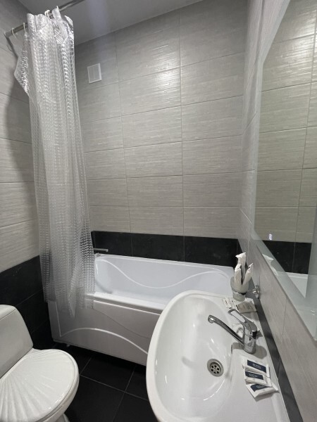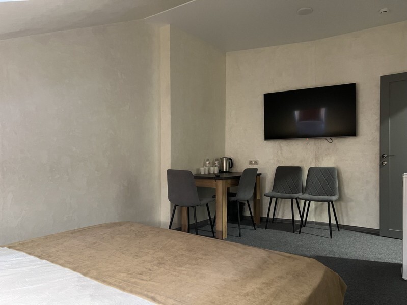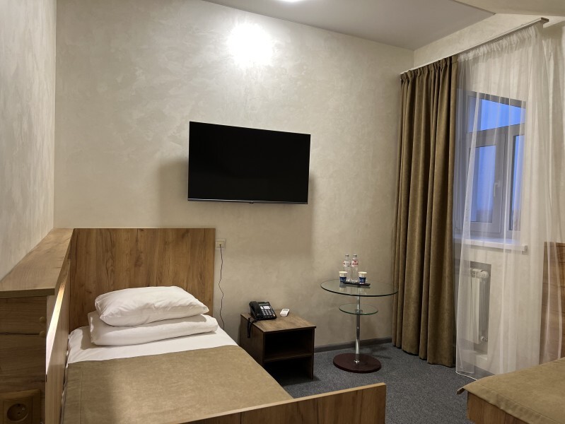 Просторный однокомнатный номер площадью 18-23м2. Номер оснащен плазменной панелью, WI-FI, мини-холодильником, телефоном, кондиционером, чайником, феном, тапочками. В ванной комнате есть все необходимые гигиенические принадлежности.