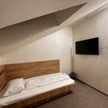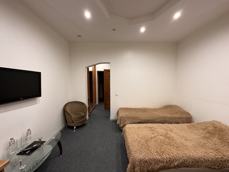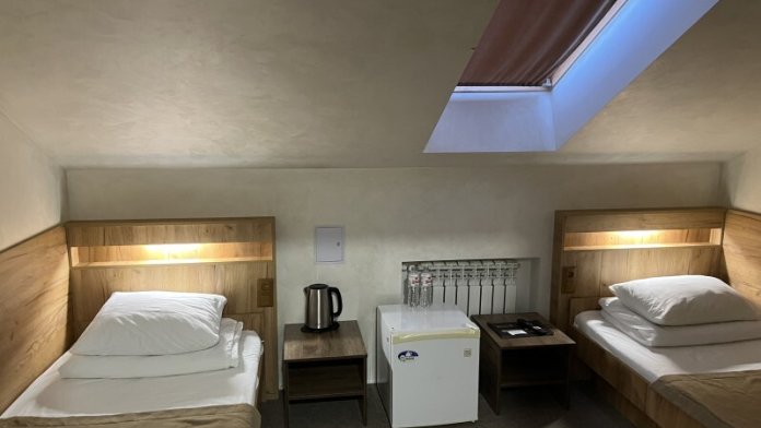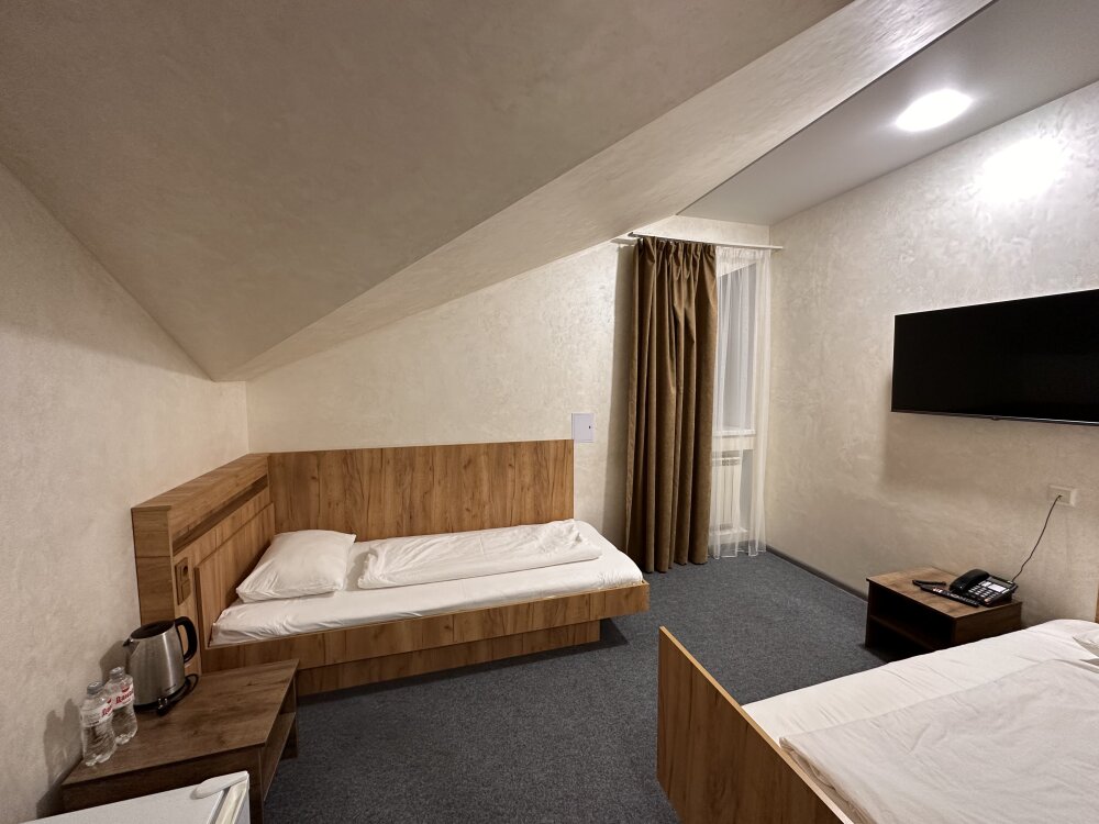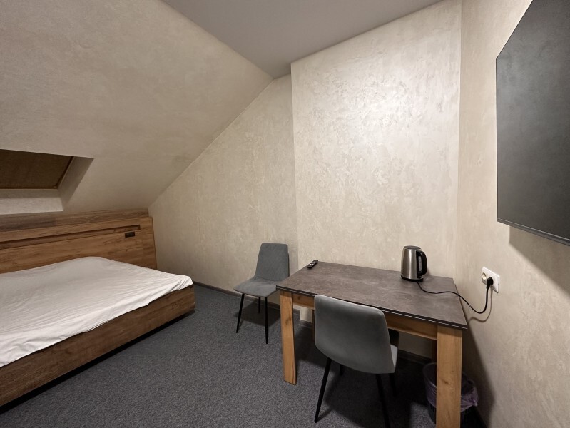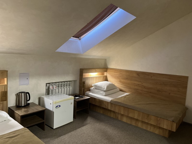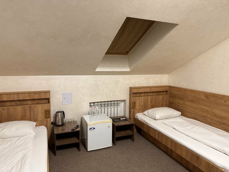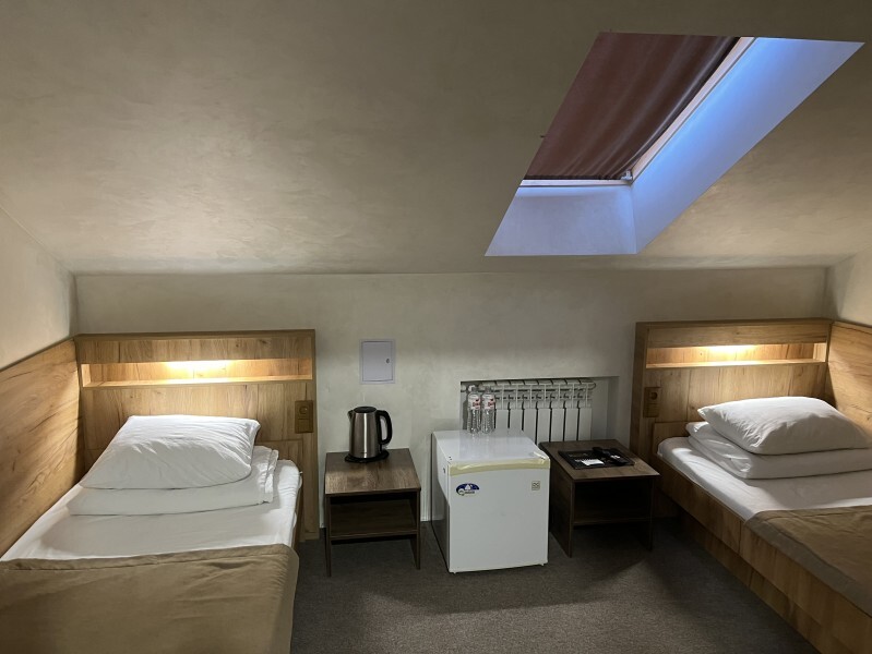 Просторный однокомнатный номер площадью 18-23м2. Номер оснащен плазменной панелью, WI-FI, мини-холодильником, телефоном, кондиционером, чайником, феном, тапочками. В ванной комнате есть все необходимые гигиенические принадлежности.