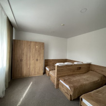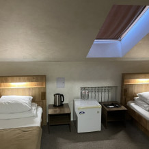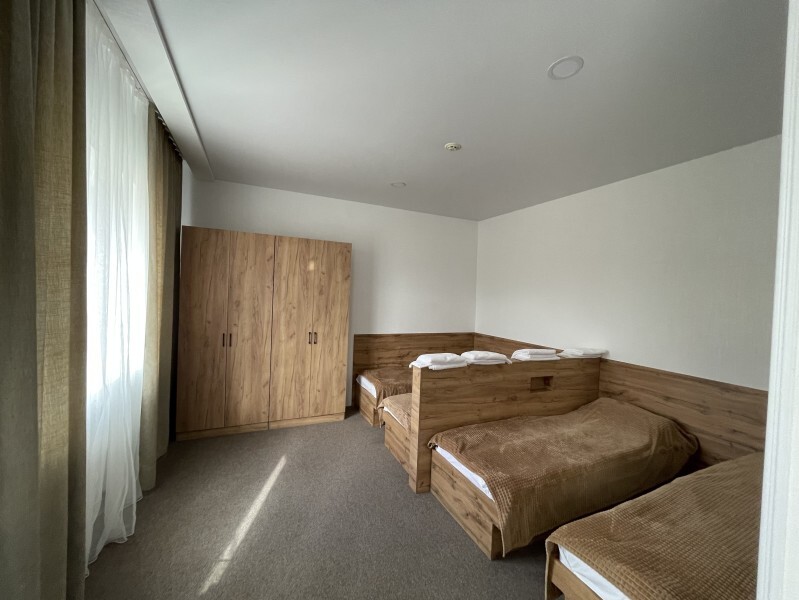 Номер оснащен 2 односпальными кроватями и 1 двуспальной кроватью.