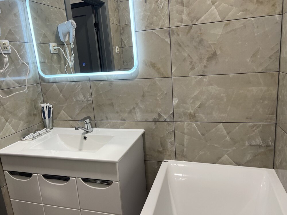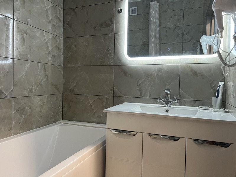 В номере есть всё для комфортного отдыха: ванная, фен, необходимые гигиенические принадлежности, полотенца.