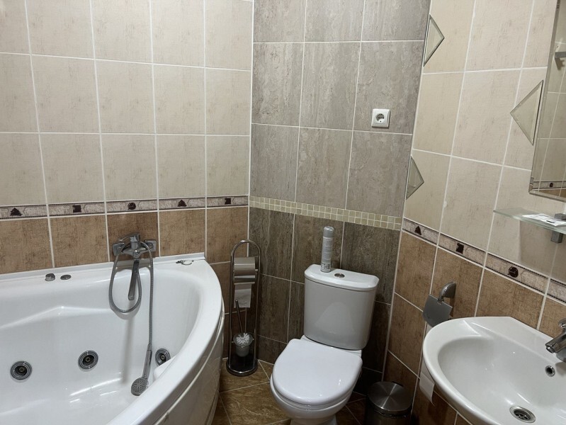 В номере есть всё для комфортного отдыха: ванная, фен, необходимые гигиенические принадлежности, полотенца, халаты, тапочки.