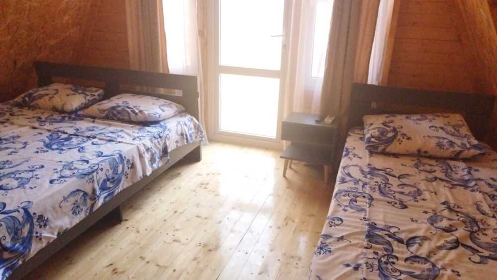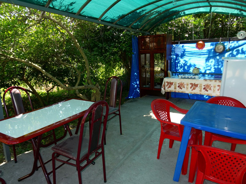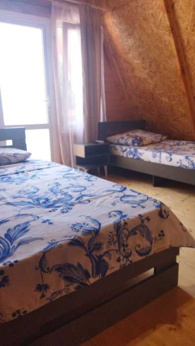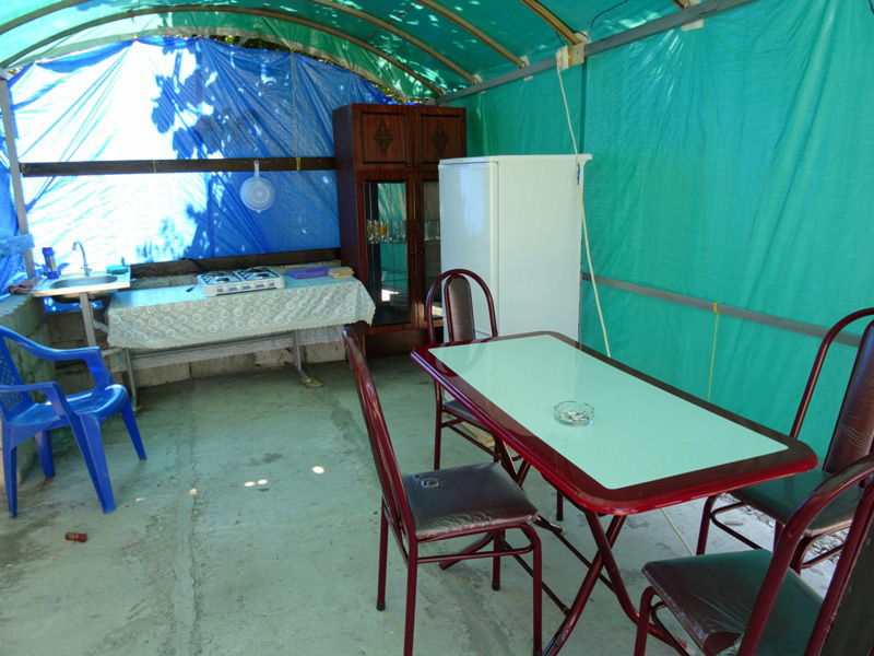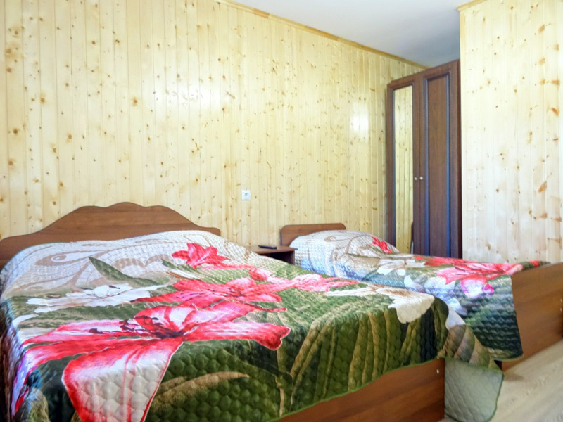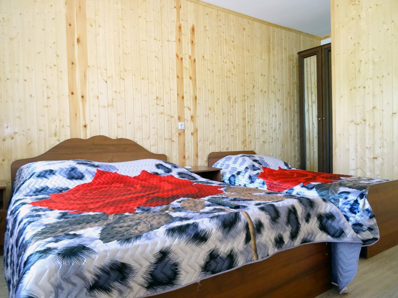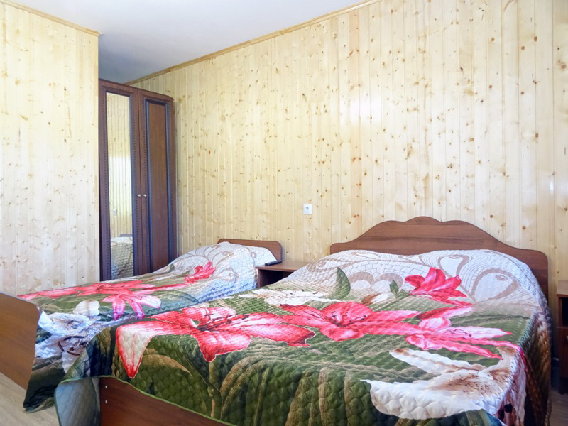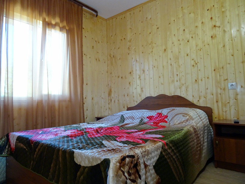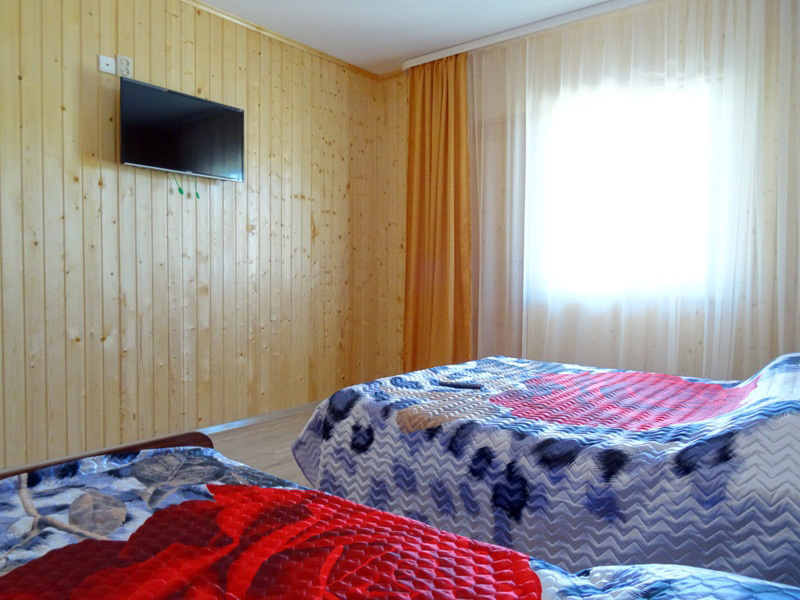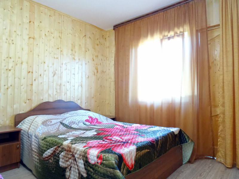 Мы предлагается для размещения двухкомнатный домик целиком или покомнатно. Рассчитана комната на проживание 3-4 гостей. В номере есть телевизор, кондиционер, санузел. Общие холодильники расположены на кухне.