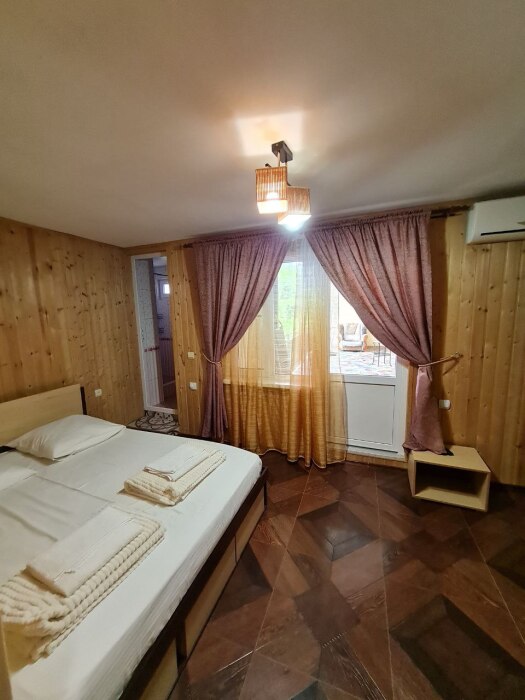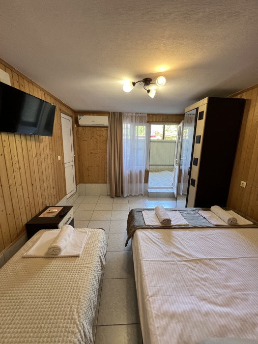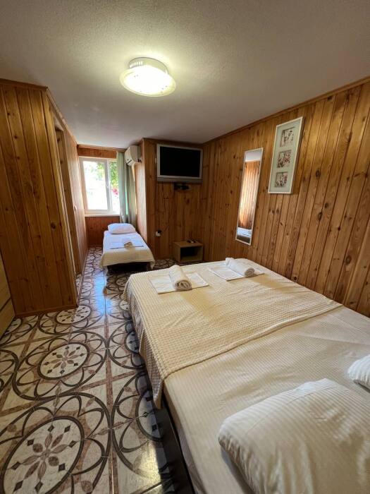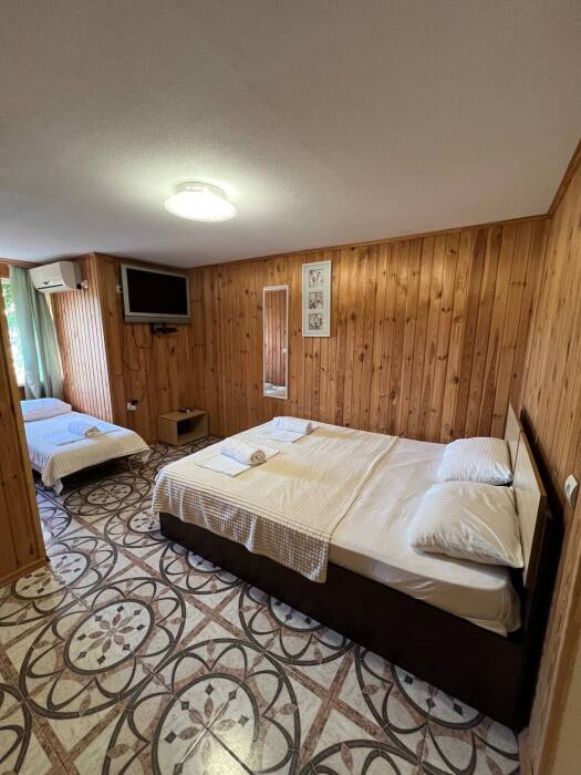 В номере душ, туалет, телевизор, кондиционер, двуспальная кровать, раскладное кресло, шкаф, тумбочка, фен, полотенца. Во всех номерах есть WiFI