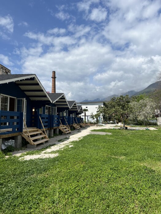 Комплекс из 4 эко-домиков расположены на большом участке с видом на горы и горную реку.