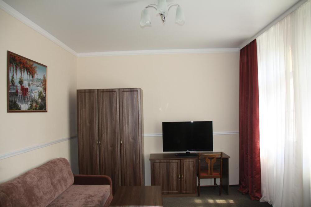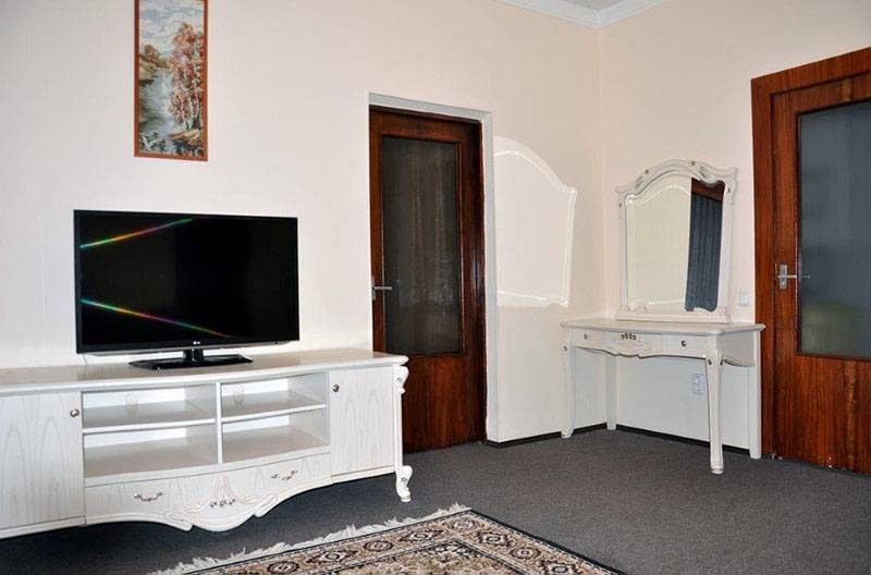 - 2-комнатные номера. В номере прихожая, гостиная, спальня, все удобства: ванна, туалет, раковина, ТВ, холодильник, электрочайник. Практически во всех номерах балкон с решётками. Эти номера удобны для размещения семьи с ребёнком.