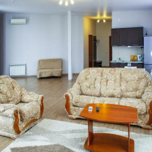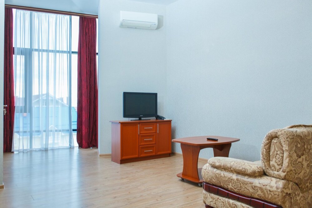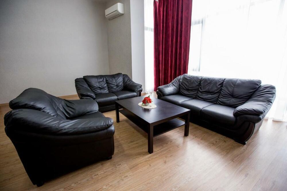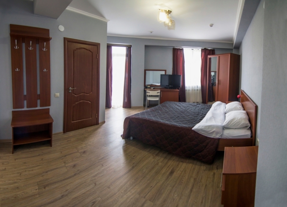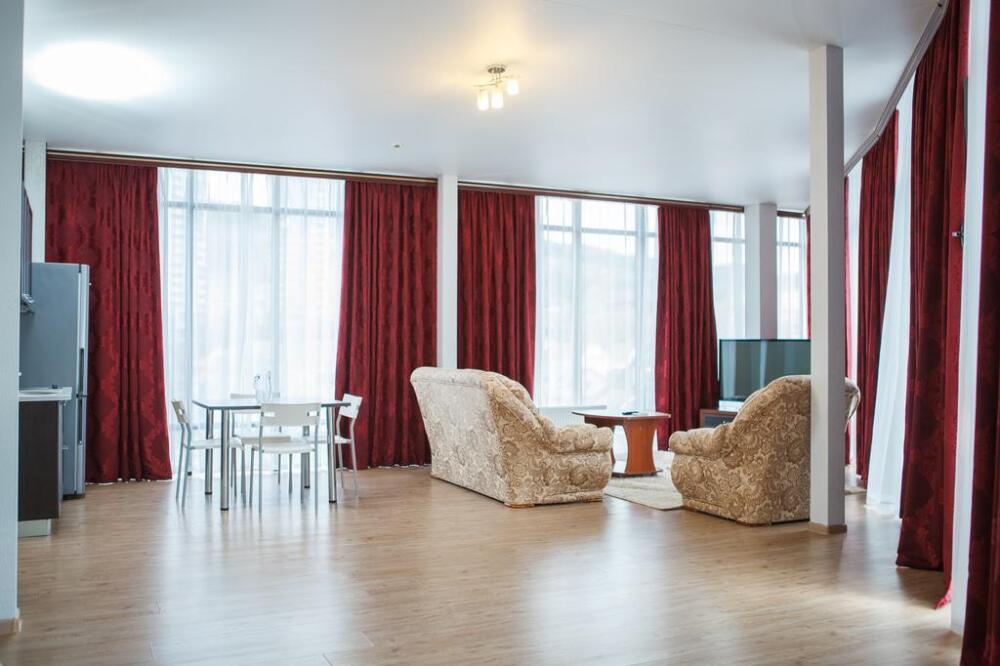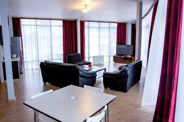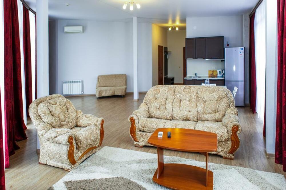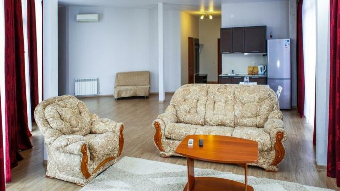 Каждый номер оснащён двумя комнатами, кухонной зоной, двуспальной кроватью, диваном-кроватью.